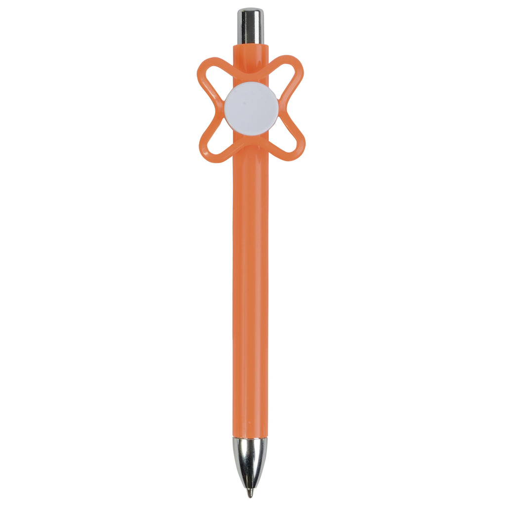 Penna a scatto in plastica colorata con spinner colorato. Articolo in arancione disponibile in 6 colori