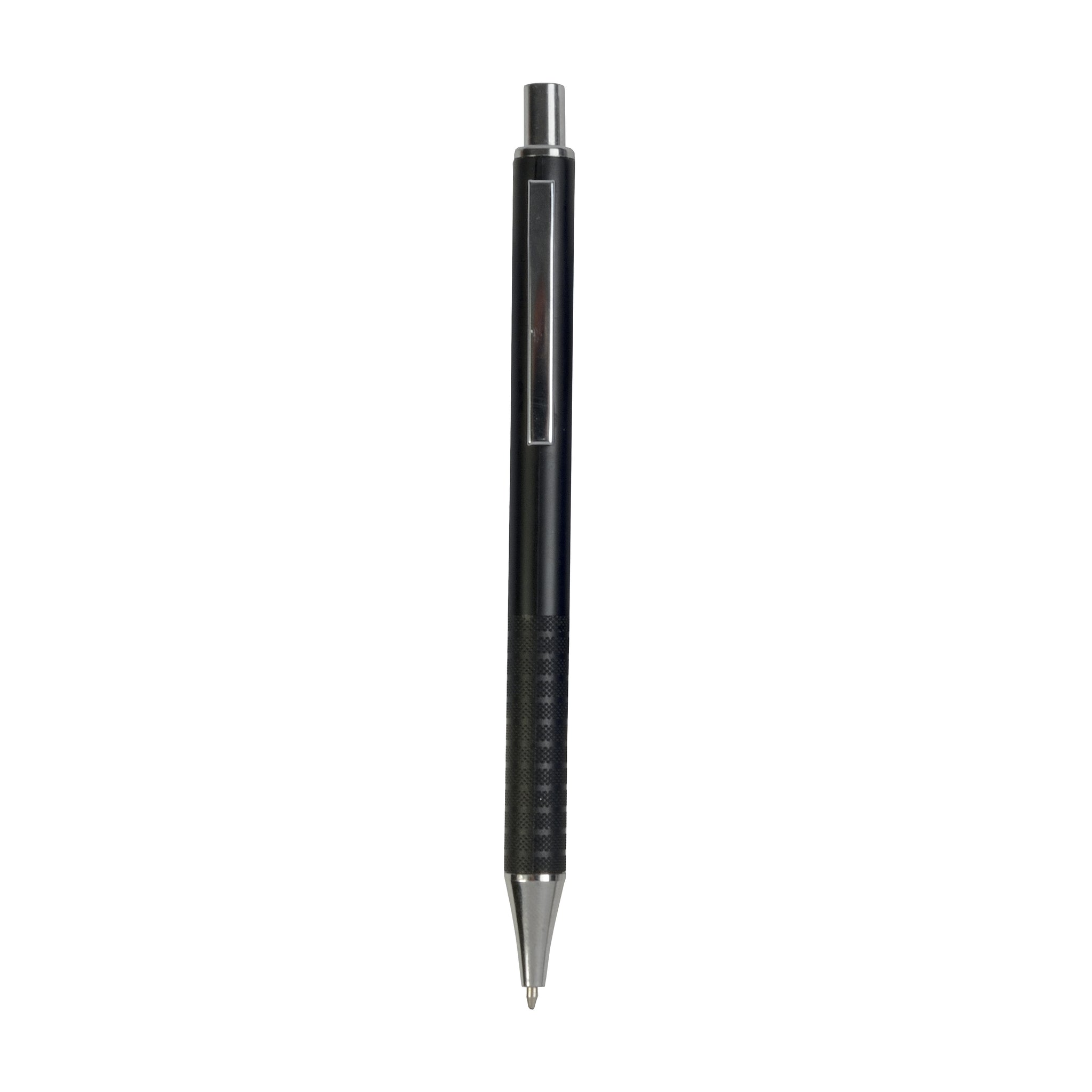 Penna a scatto in plastica con impugnatura zigrinata e clip in metallo