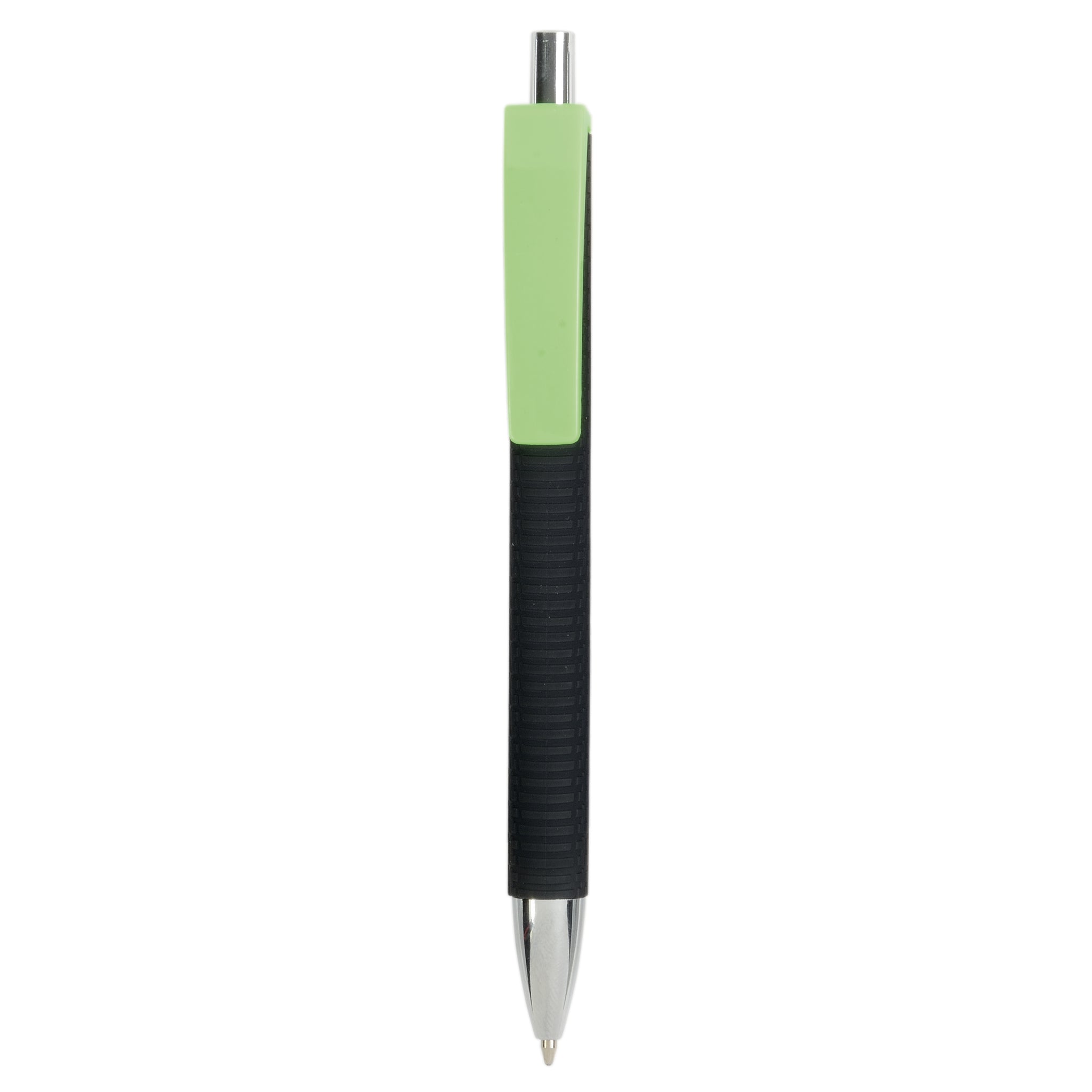 Penna a scatto in plastica con fusto gommato effetto pneumatico nero, con clip larga colorata