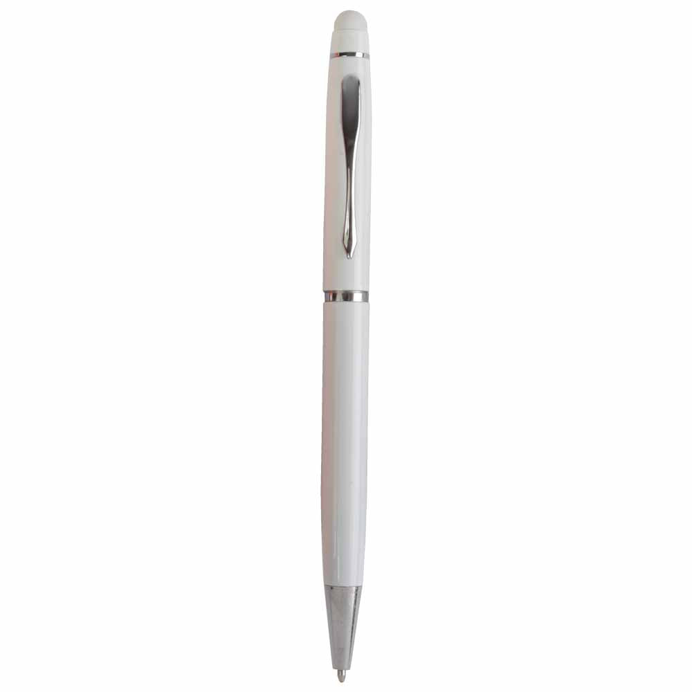 Penna twist in metallo colorata, con gommino per touch screen in tinta. Variante in bianco disponibile in 5 colori