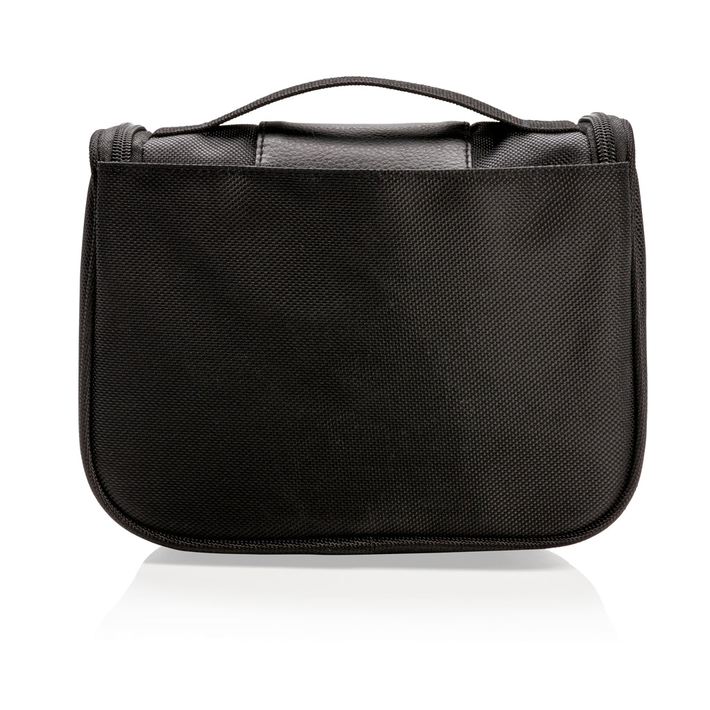 Beauty case in 1680D. Lo scomparto pricipale comprende 2 tasche a rete aperte e una tasca a rete con zip. Include gancio per un facile utilizzo. Capacità L 2