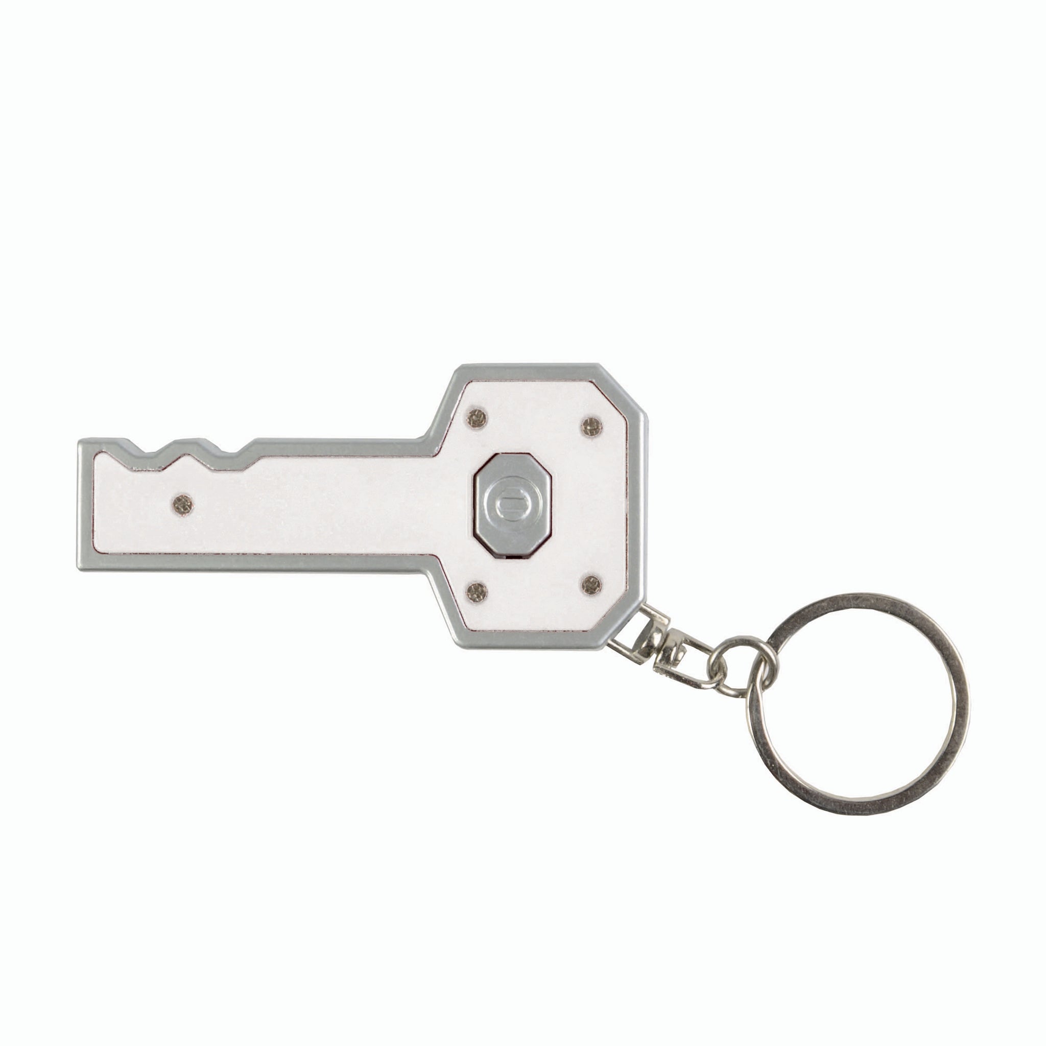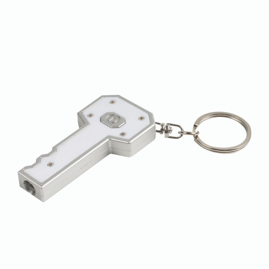 Portachiavi a forma di chiave, con luce. Variante in bianco disponibile in 4 colori
