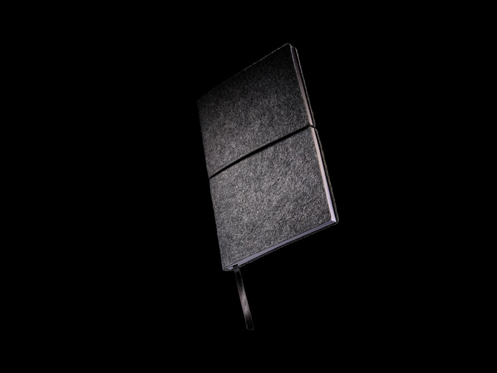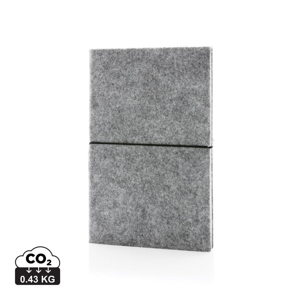 Taccuino A5 con copertina morbida in feltro certificato GRS. Variante in grigio disponibile in 2 colori