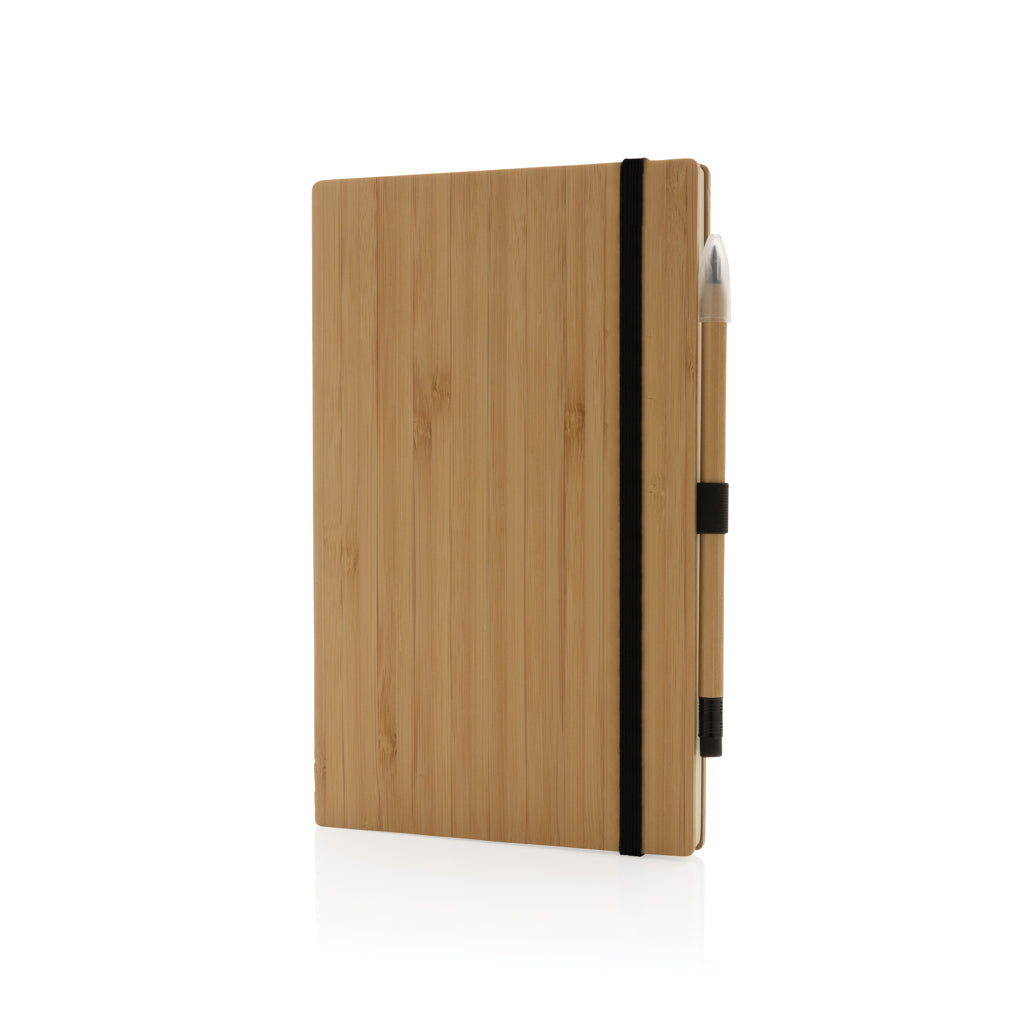 Questo bellissimo taccuino in bambù certificato FSC® è realizzato con 80 fogli/160 pagine di carta riciclata da 70 gm². Il set include una matita infinity che equivale a circa 100 matite tradizionali! Ha una lunghezza di scrittura di circa 20.000 metri grazie alla punta di grafite che garantisce un tratto fluido. Non solo scrive come una matita ma è anche cancellabile. In bambù certificato FSC® in scatola regalo FSC®.