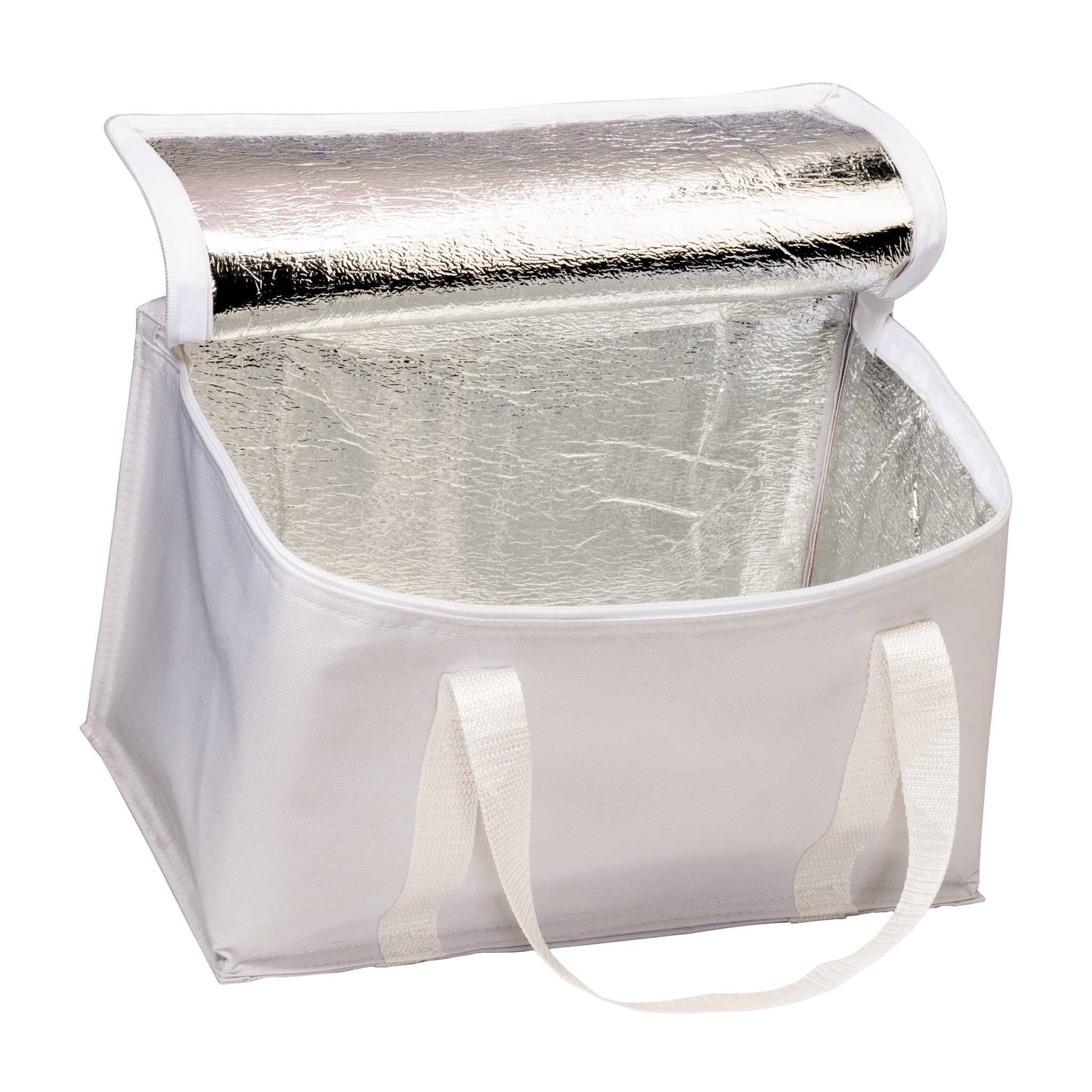 Borsa termica in poliestere 600D con interno argentato. Variante in bianco disponibile in 8 colori