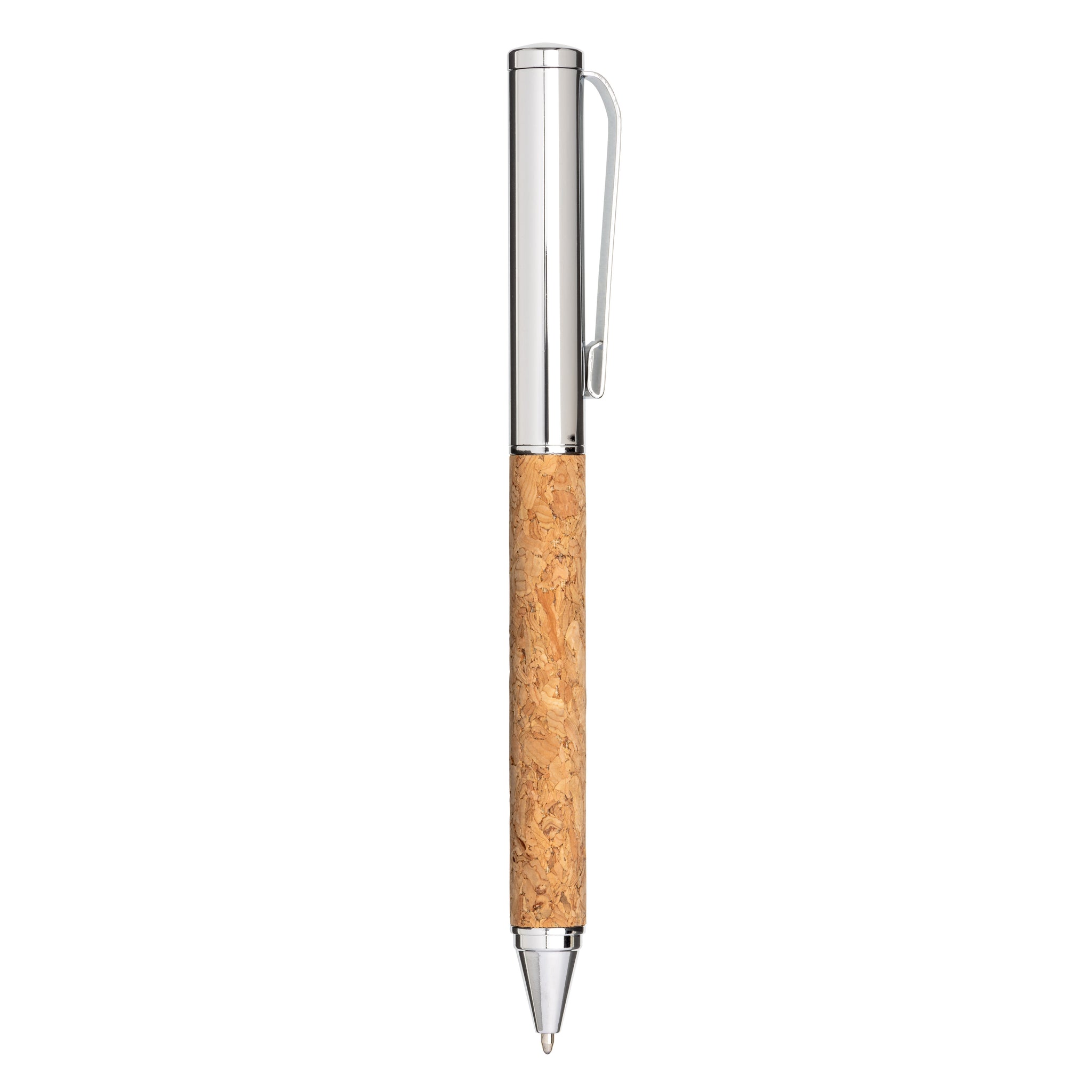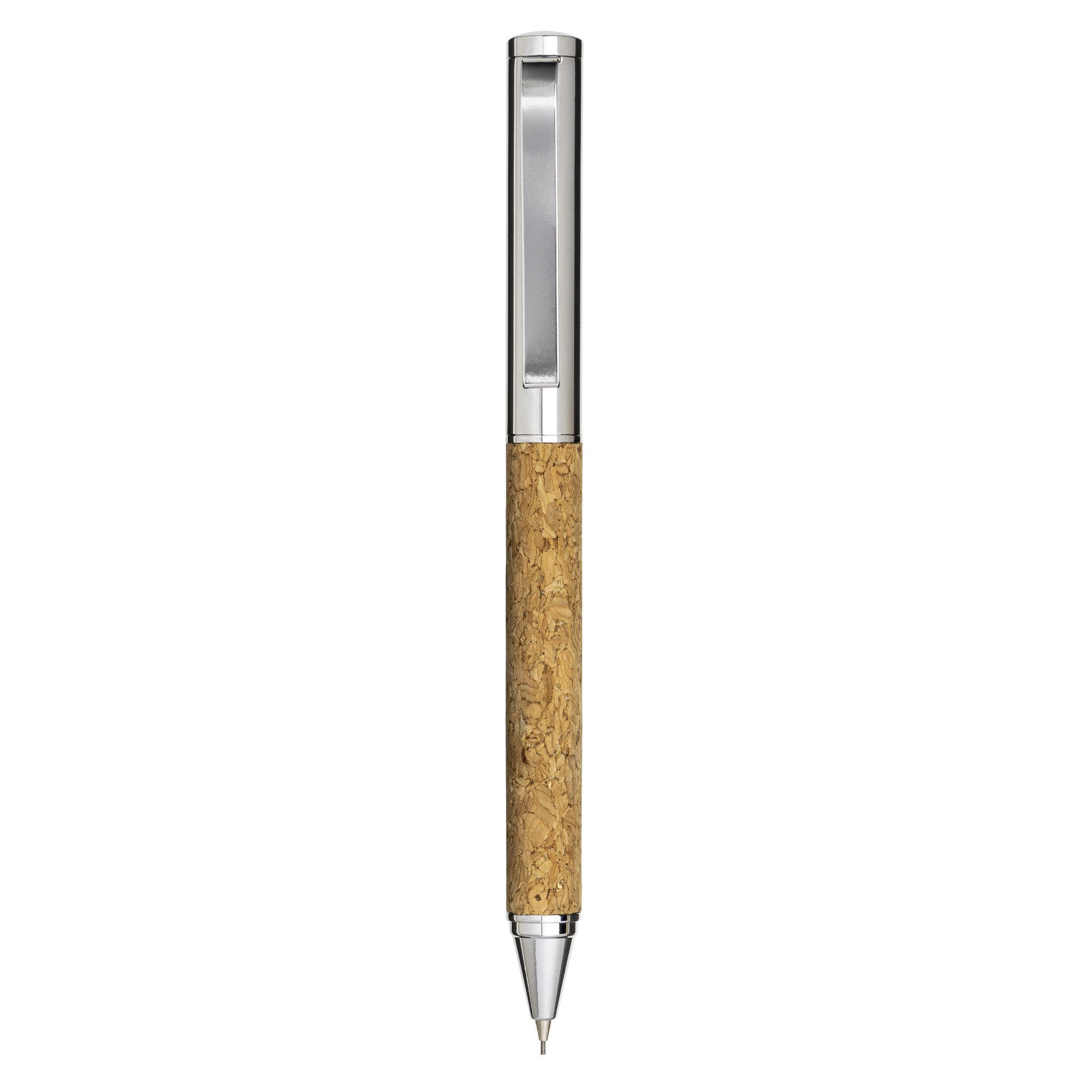Set composto da una penna twist e una matita, con fusto in sughero e finiture cromate. Confezionate in una scatola in sughero.
