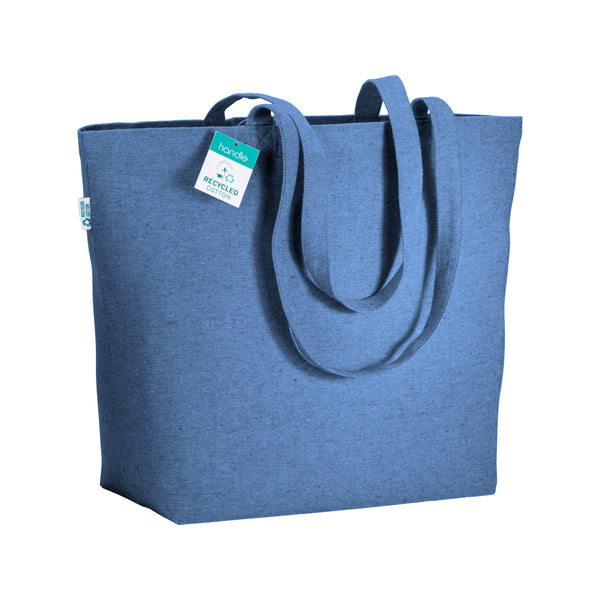 Shopper con soffietto alla base in cotone riciclato 280 g/m², manici lunghi. Modello in royal disponibile in 10 colori