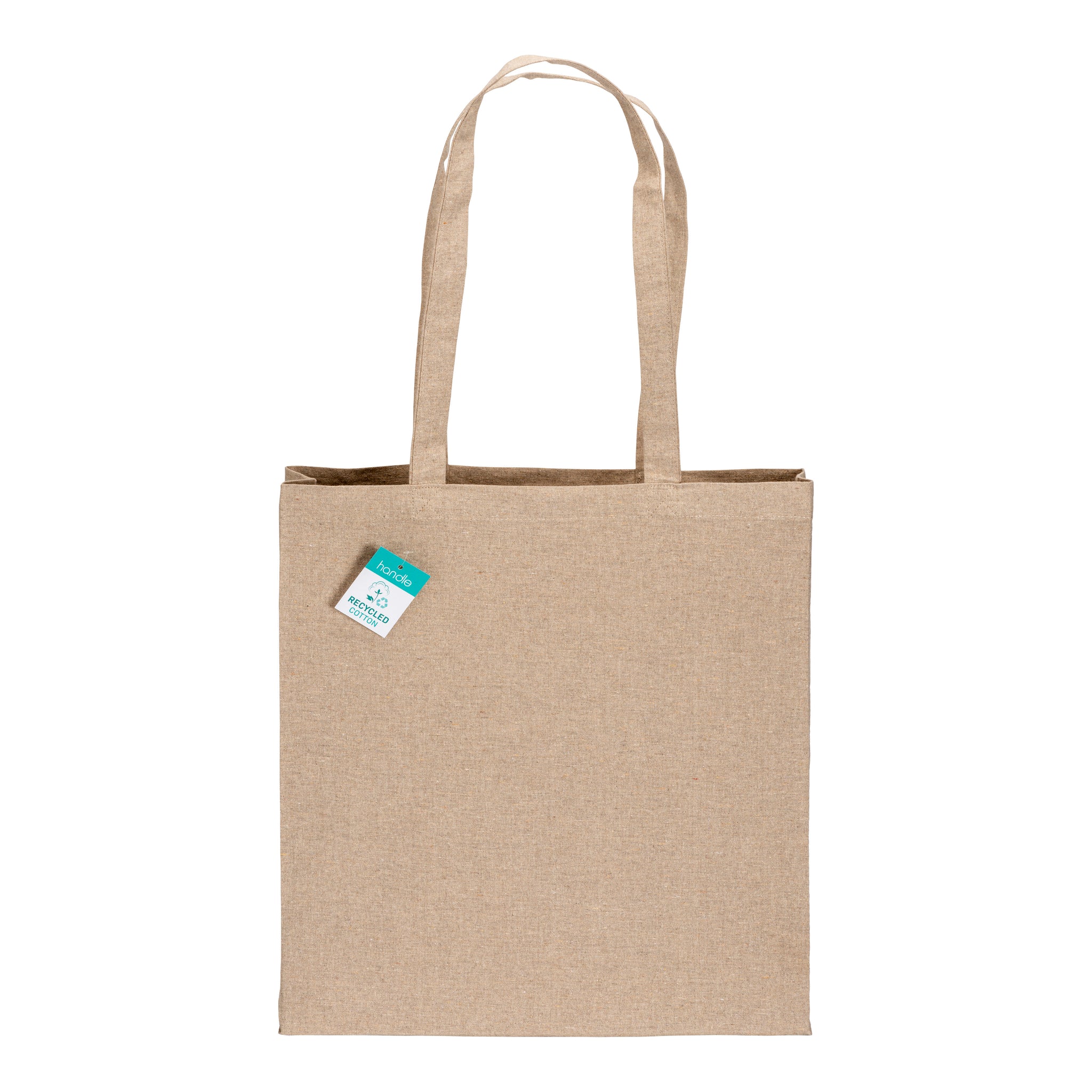 Shopper in cotone riciclato 190 g/m², manici lunghi e soffietto. Modello in naturale disponibile in 10 colori