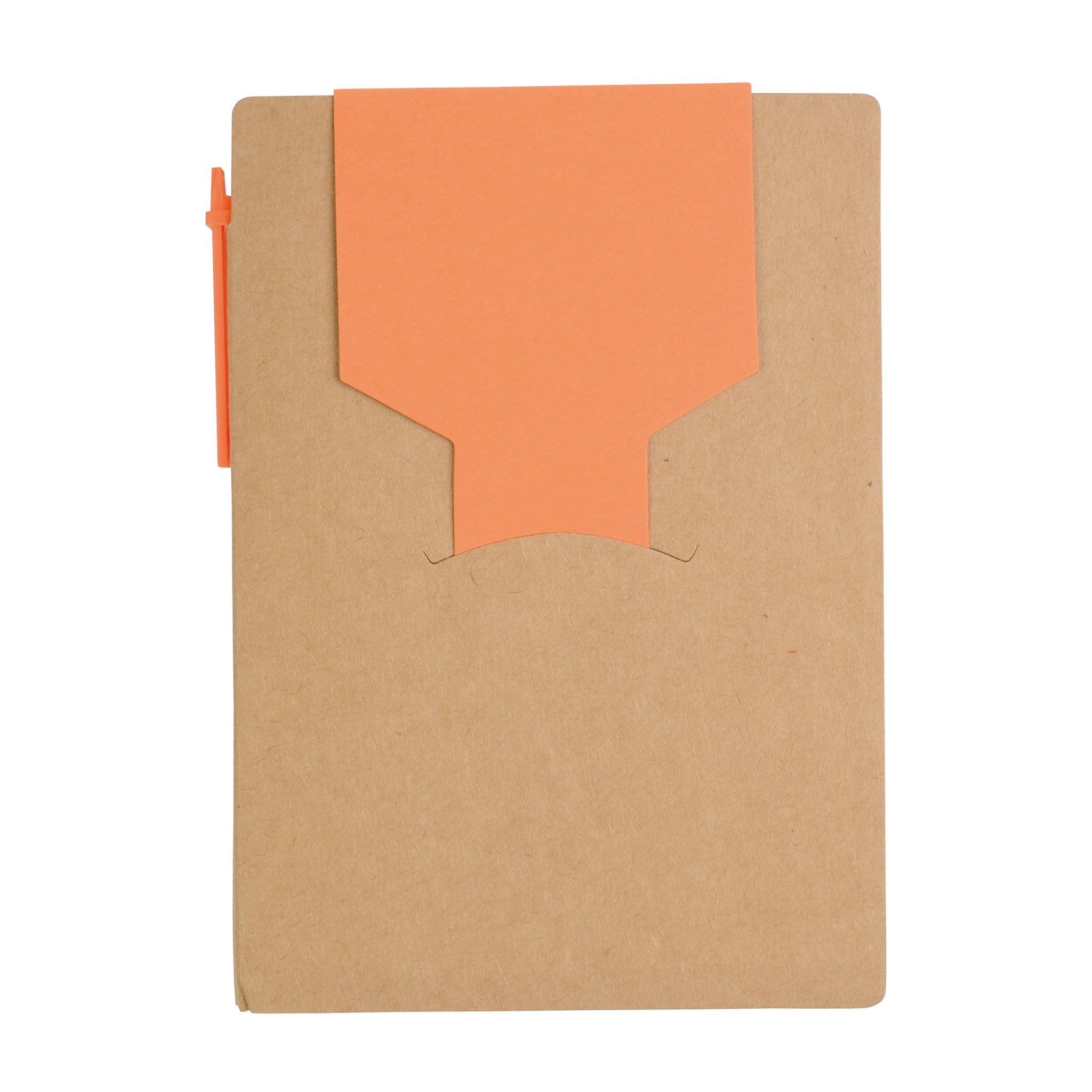 Block notes in carta riciclata, con penna in cartone e foglietti adesivi. Variante in bianco disponibile in 7 colori