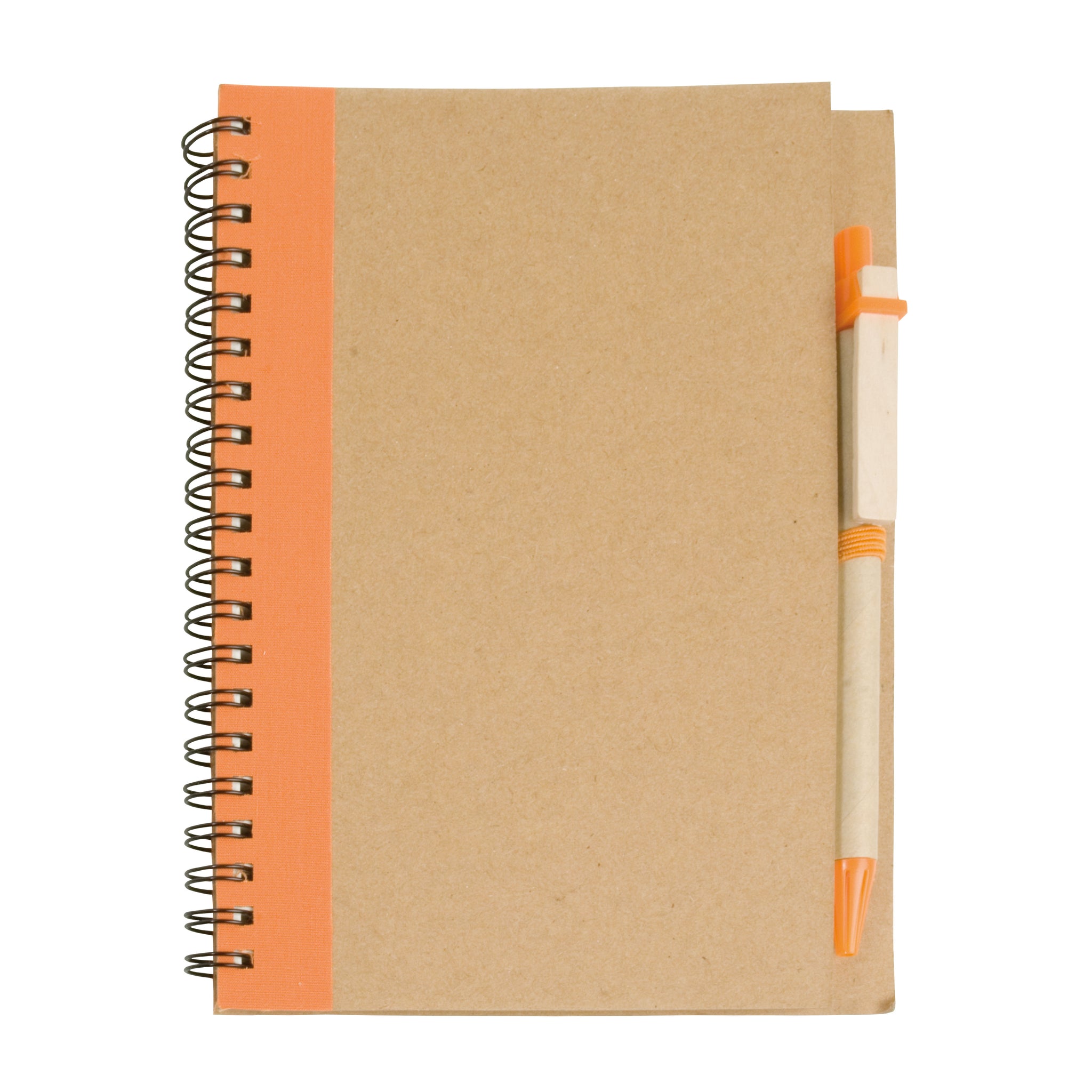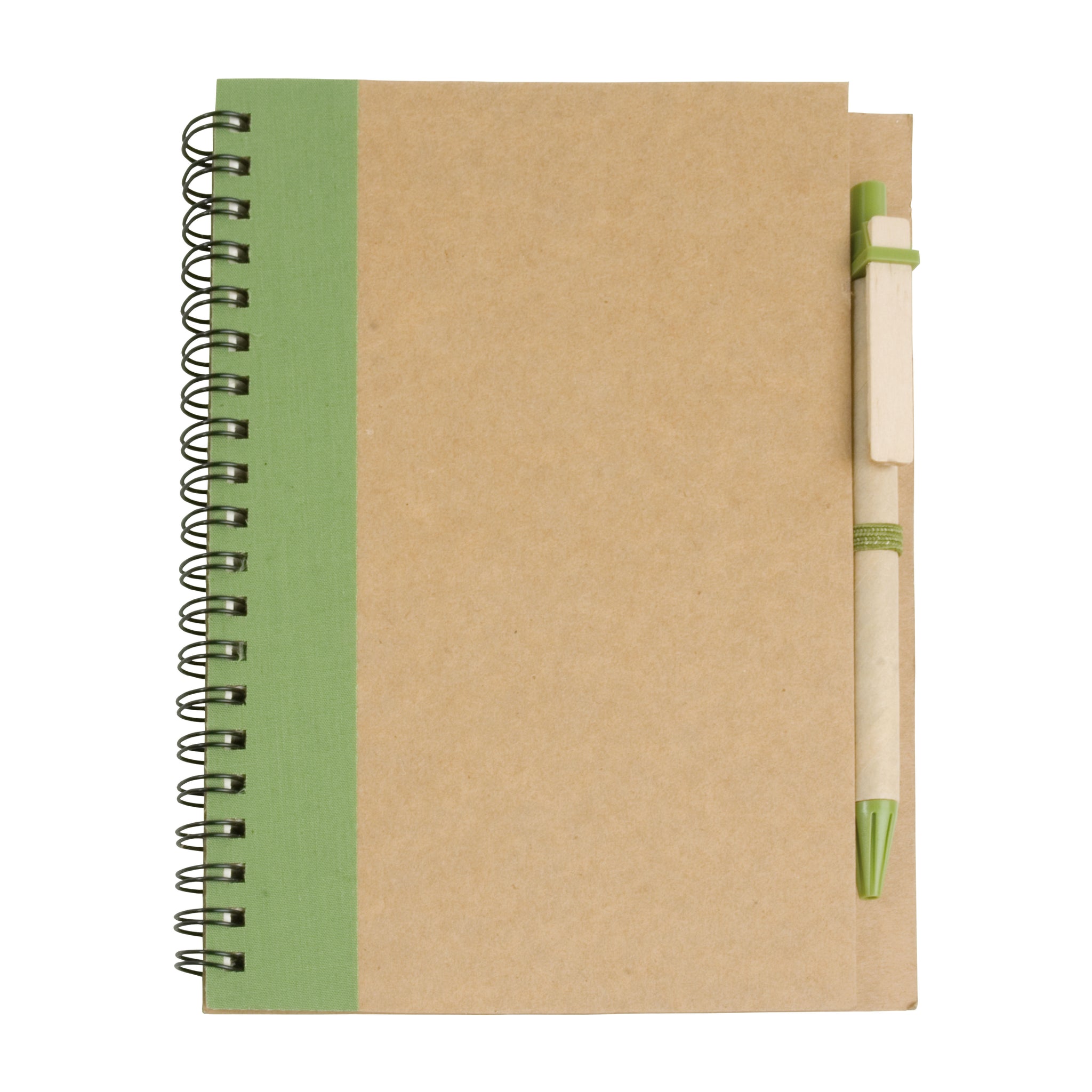 Quaderno ad anelli in carta riciclata. fogli bianchi con penna in cartone (70 pg.)