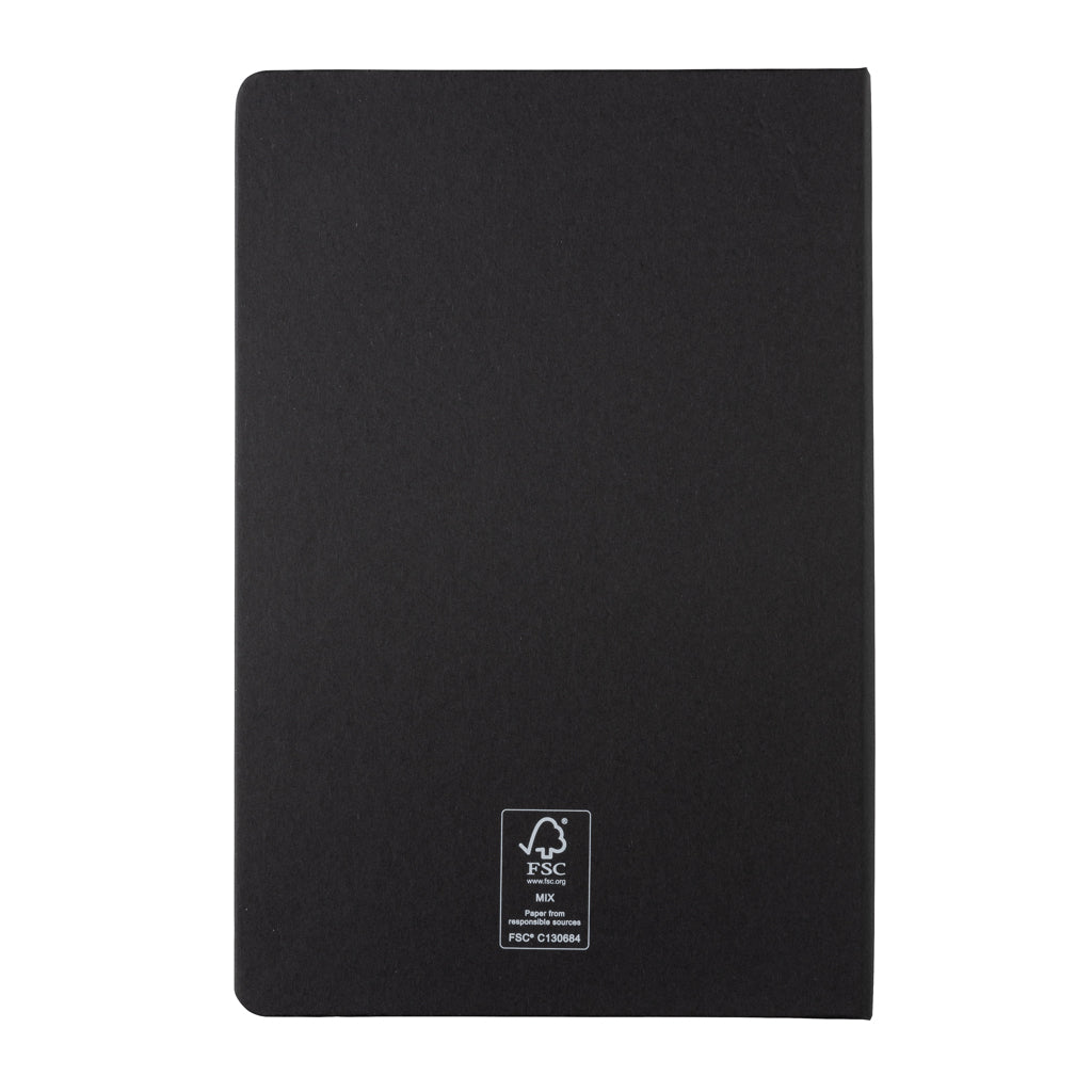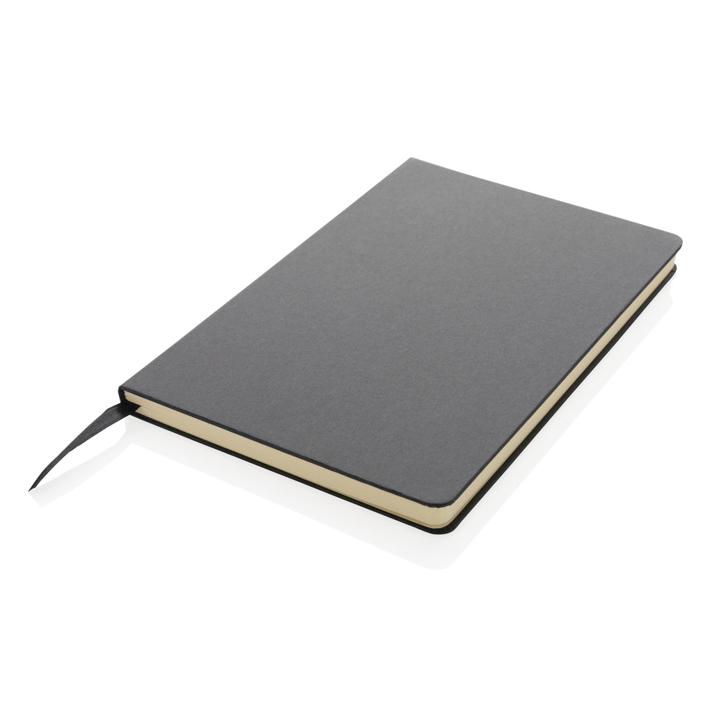 Taccuino A5 con copertina rigida. Modello in nero disponibile in 3 colori