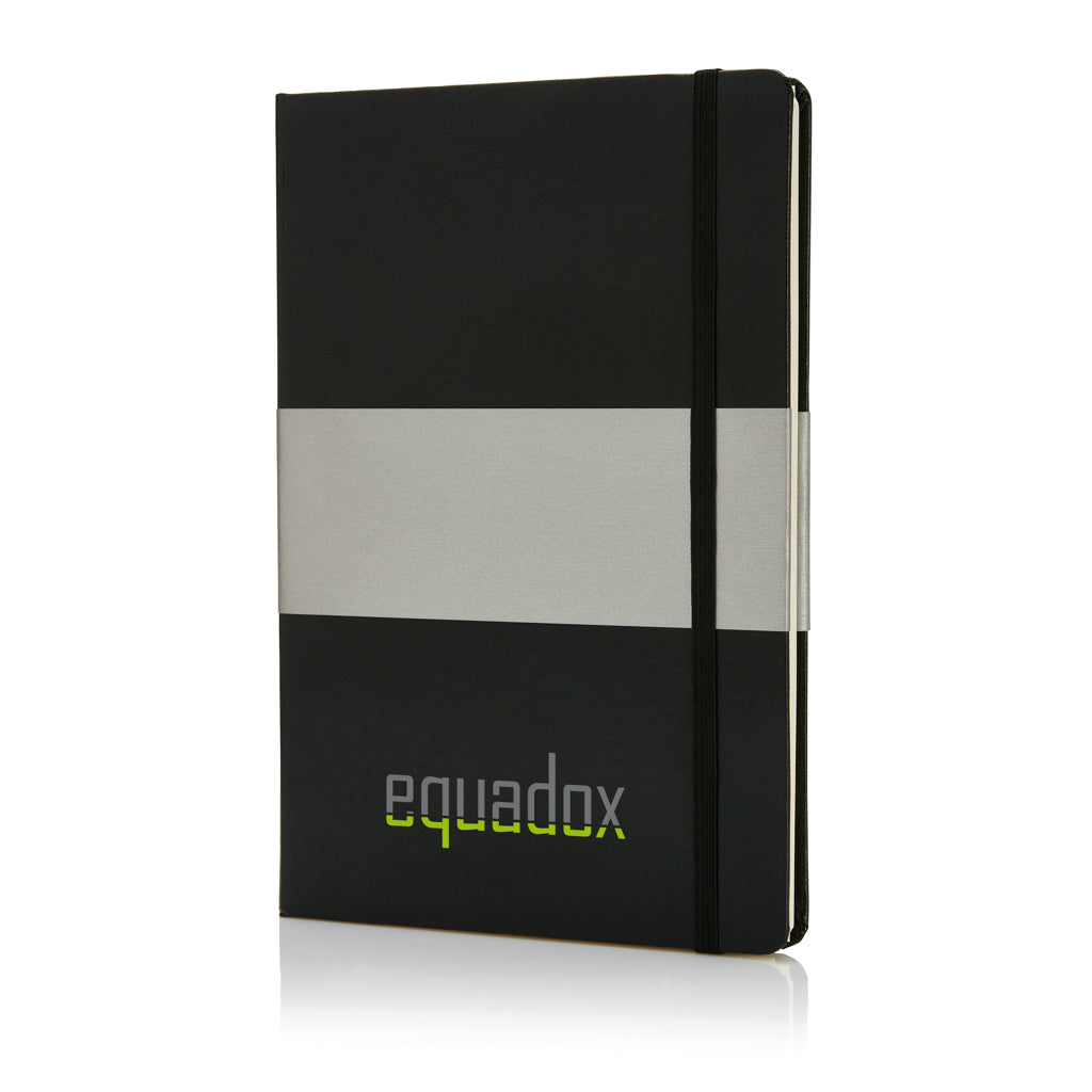 Taccuino A5 Deluxe con copertina rigida. Modello in nero disponibile in 2 colori