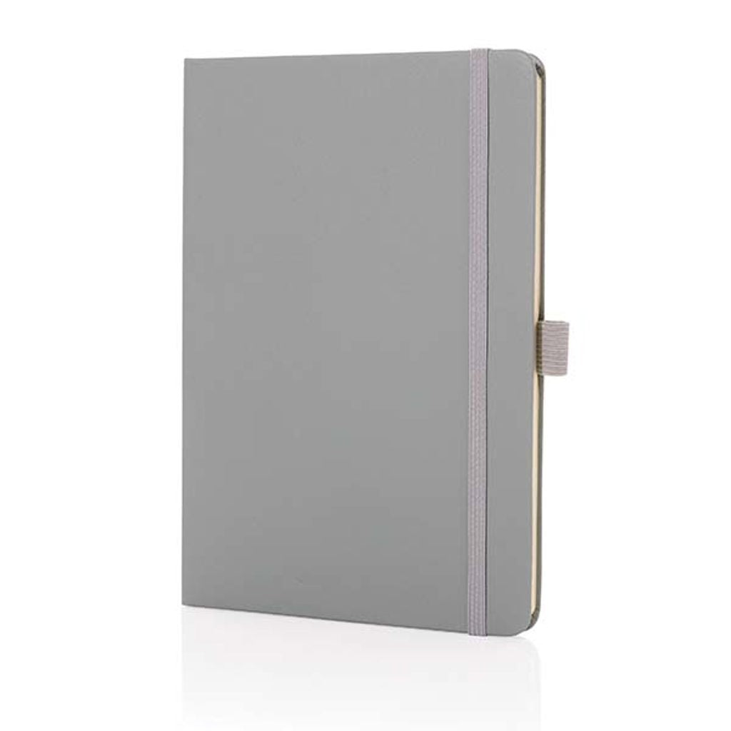 Appuntate i vostri pensieri e le vostre ispirazioni creative in questo elegante taccuino A5 con copertina rigida in cuoio riciclato certificato RCS. Il suo design elegante vanta una splendida finitura che lo rende una scelta sofisticata per le vostre attività di scrittura. Il taccuino è dotato di 80 fogli/160 pagine di carta riciclata di alta qualità certificata RCS da 70 g/m² a righe bianche. È inoltre dotato di un elastico verticale e di un comodo passante per la penna, che ne aumentano la praticità e il fascino. Contenuto totale di materiale riciclato: 67% in base al peso totale dell'articolo.