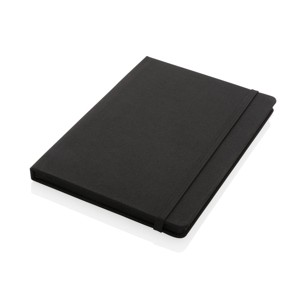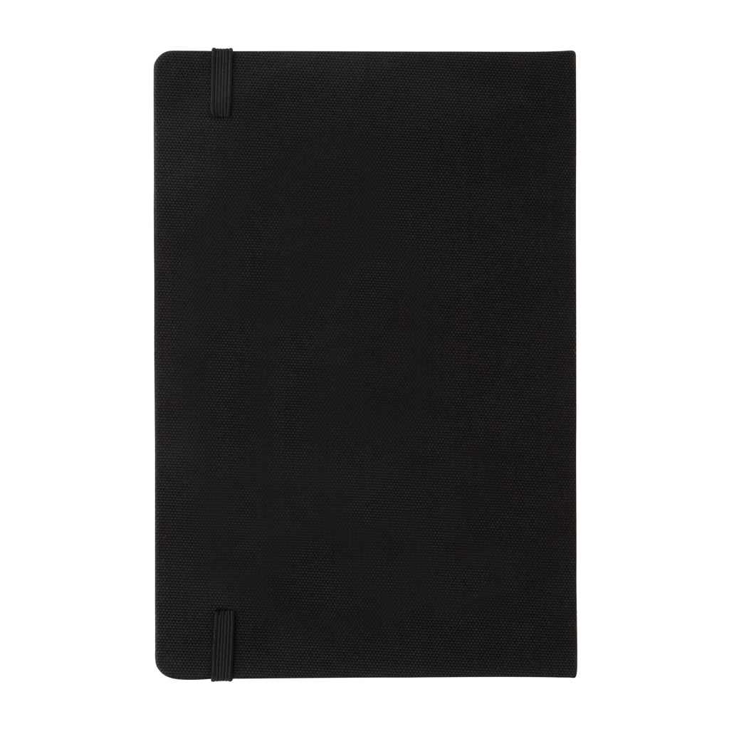 Taccuino A5 in RPET certificato GRS. Modello in nero disponibile in 4 colori
