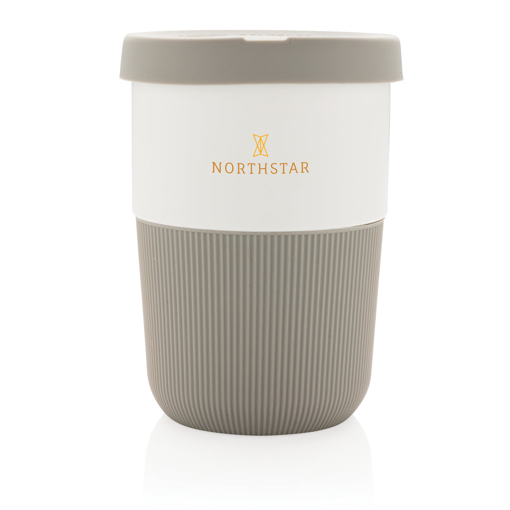 Tazza coffee to go in PLA 380ml. Variante in grigio disponibile in 2 colori