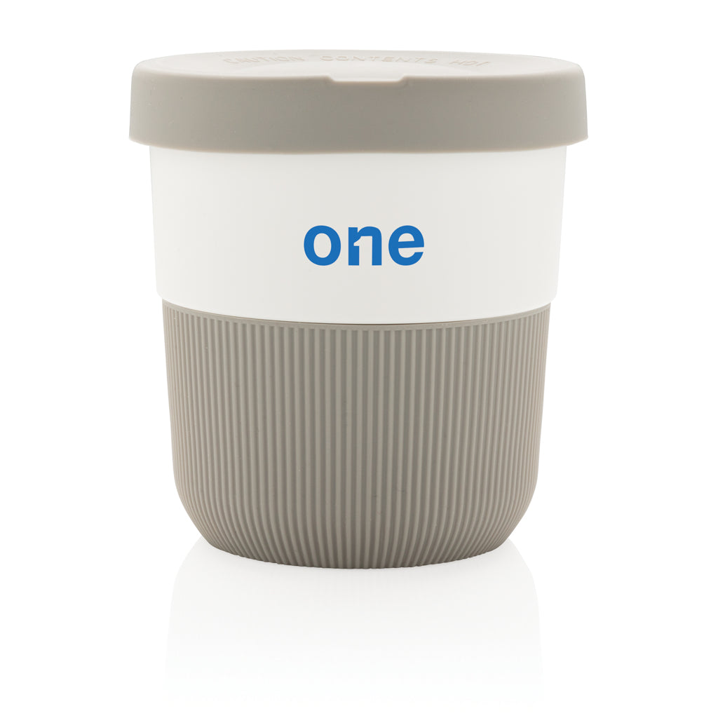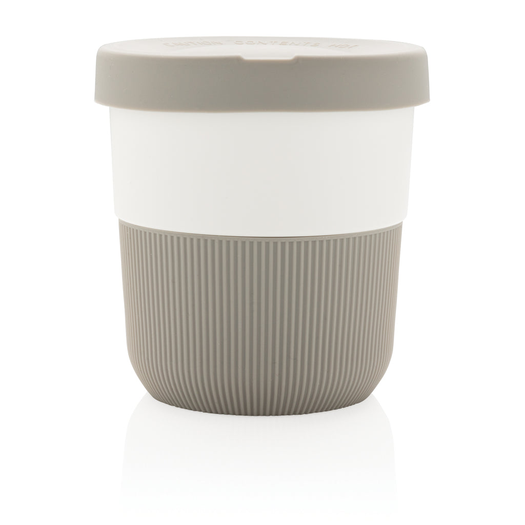 Tazza coffee to go 280ml in PLA. Variante in grigio disponibile in 3 colori