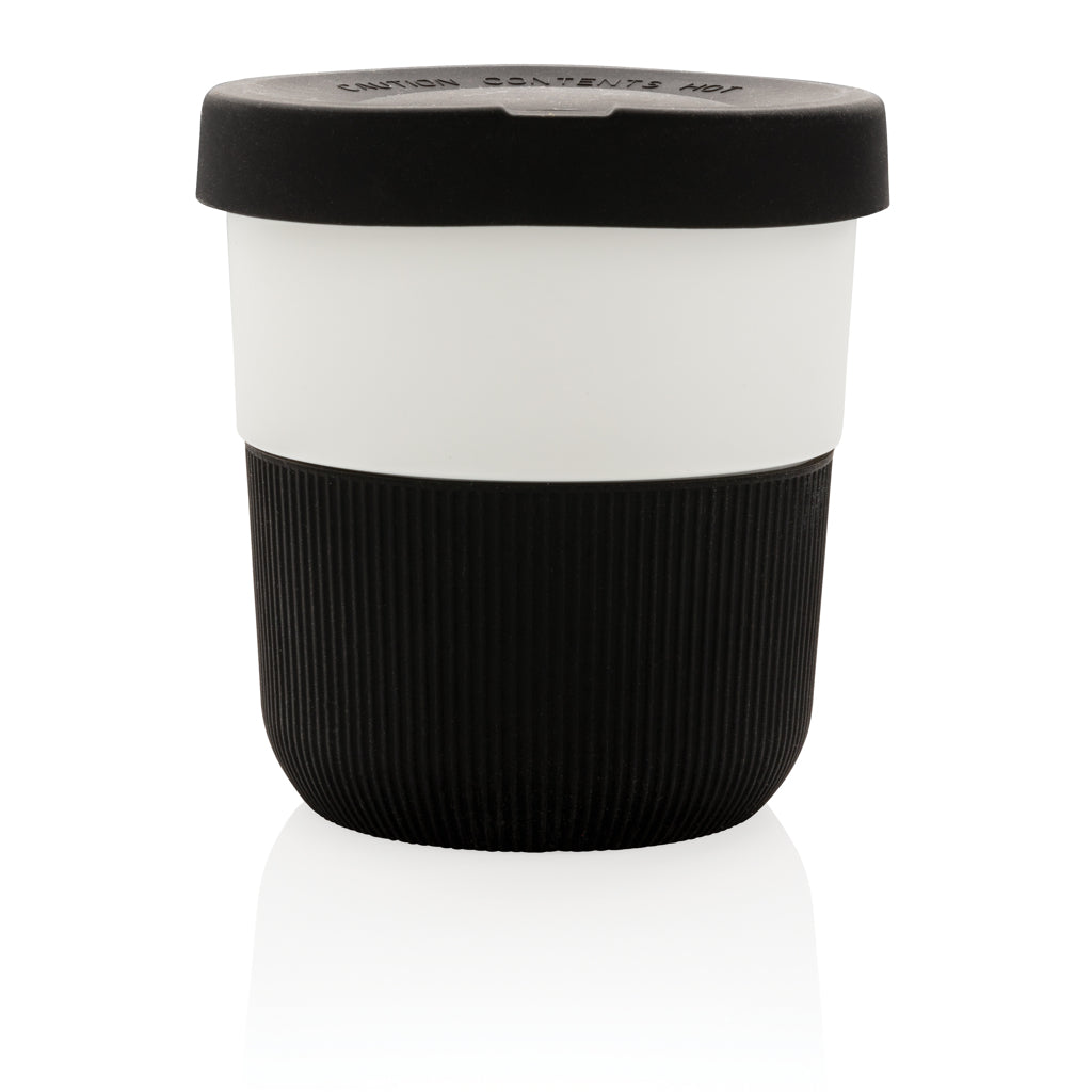Tazza coffee to go 280ml in PLA. Modello in nero disponibile in 3 colori