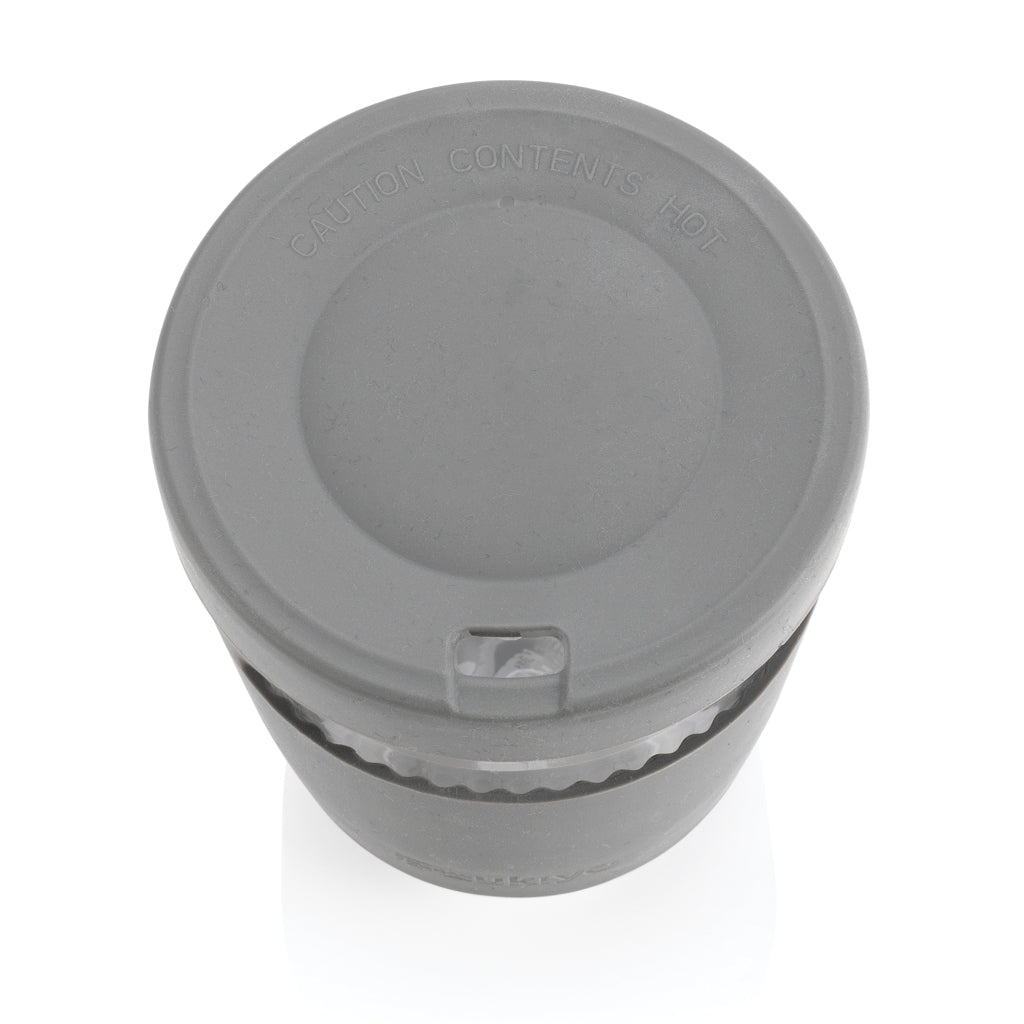 Goditi il tuo caffè al lavoro o a casa in questo bicchiere borosilicato Ukiyo con coperchio e manica in silicone. Ha una bella presa e una forma sottile. Un piccolo sfiato nel coperchio consente al vapore di fuoriuscire per prevenire l'accumulo di pressione. Senza BPA. Capacità 360 ml. Capacità L 0,36