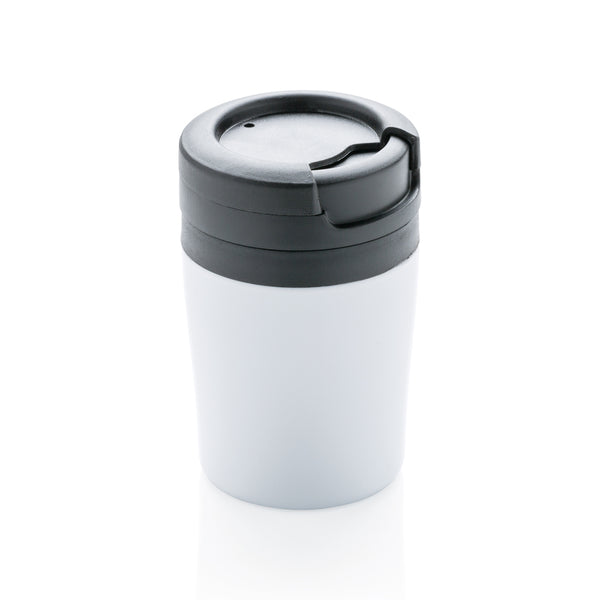 Piccolo è meglio. Con i suoi 8 cm di altezza è la tazza perfetta per la tua macchina da caffè. Interno in PP. Tappo facile da avvitare e svitare a prova di goccia. Non va in lavastoviglie. Capacità 160 ml. Design registrato® Capacità L 0,16
