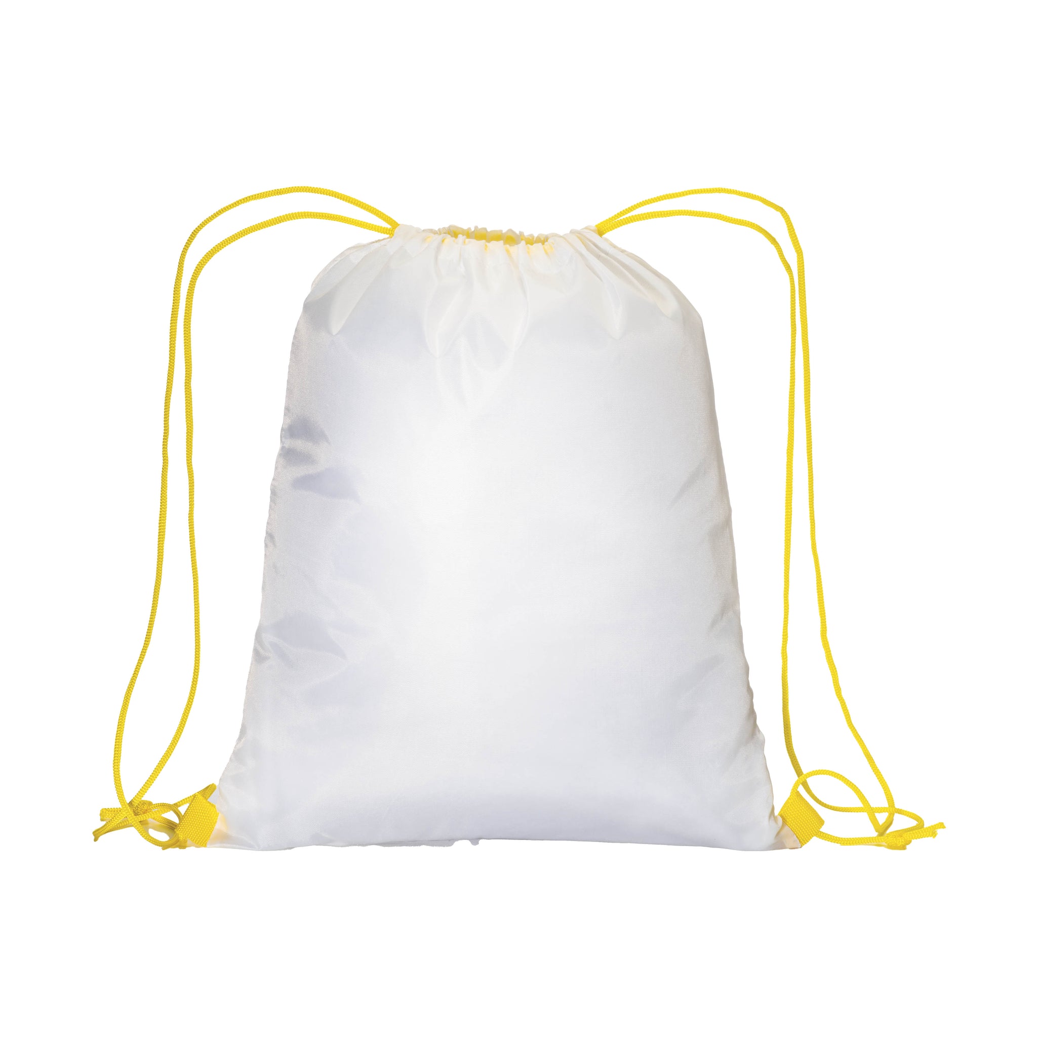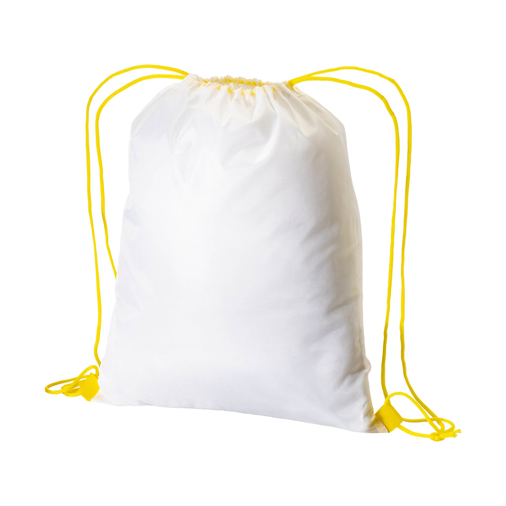 Zainetto bianco in poliestere 210 T con chiusura a strozzo e cordini colorati. Articolo in giallo disponibile in 7 colori