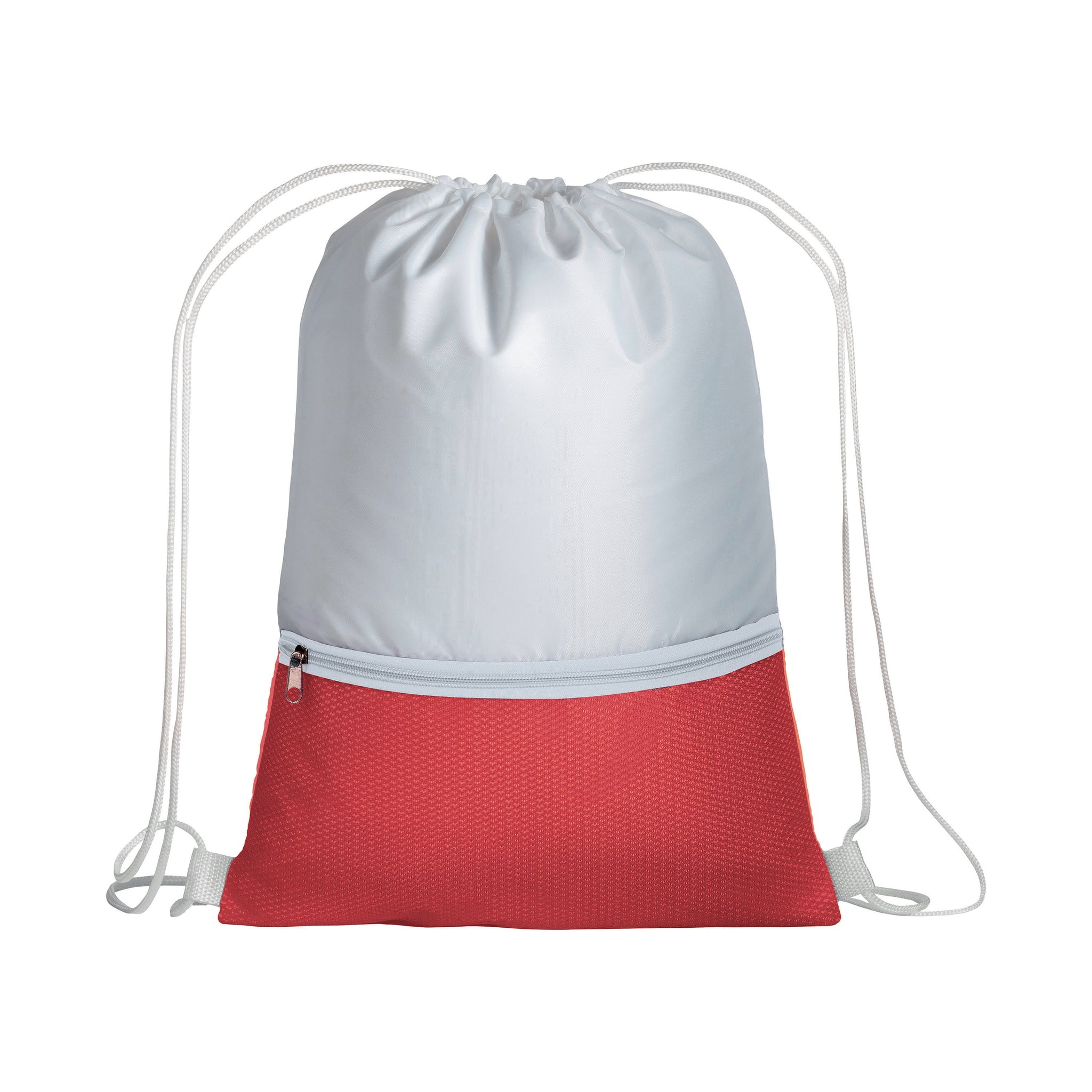 Zainetto in poliestere 210T con tasca zip colorata e chiusura a strozzo. Variante in rosso disponibile in 6 colori