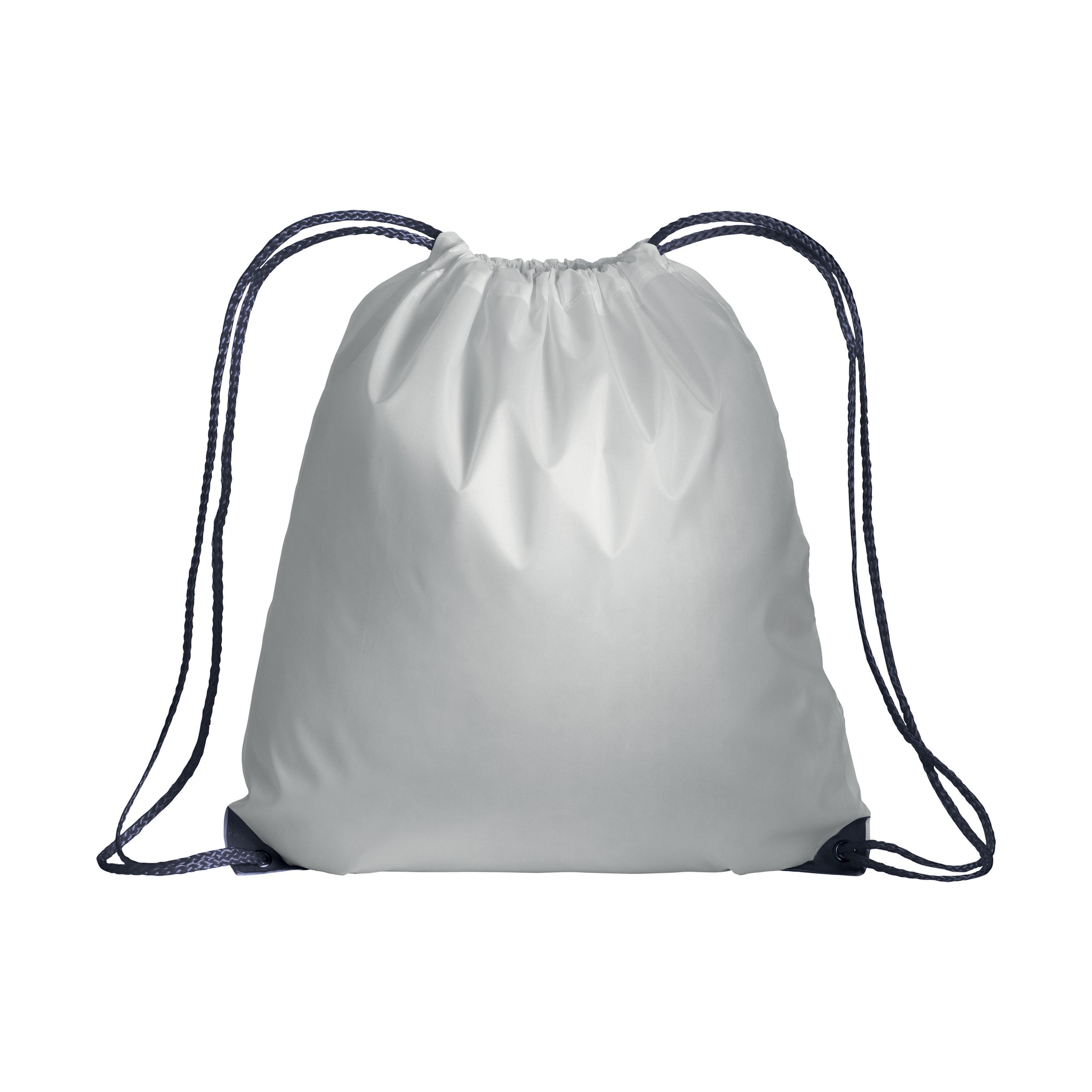 Zainetto bianco in poliestere 210 T con chiusura a strozzo, angoli rinforzati. Variante in blu disponibile in 7 colori