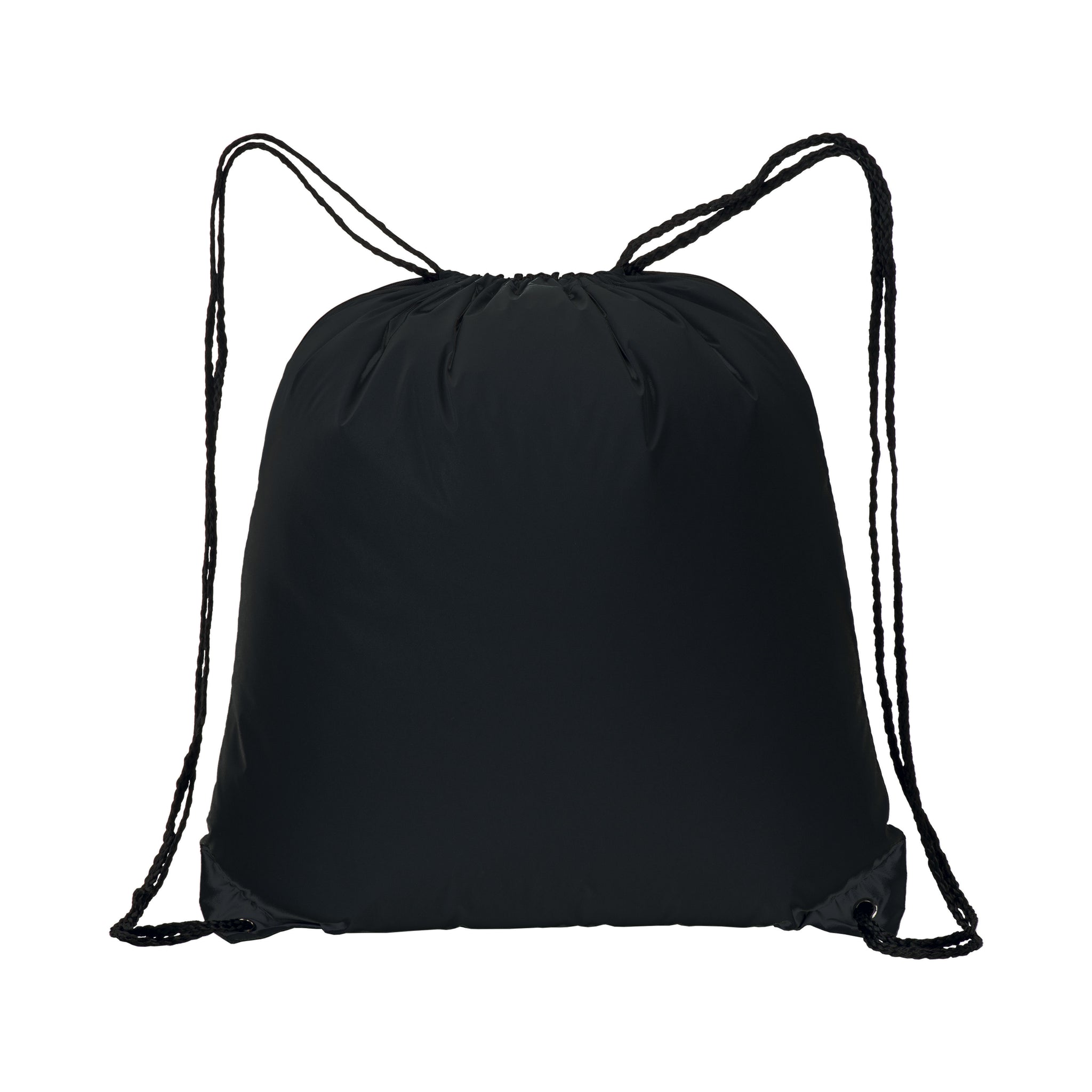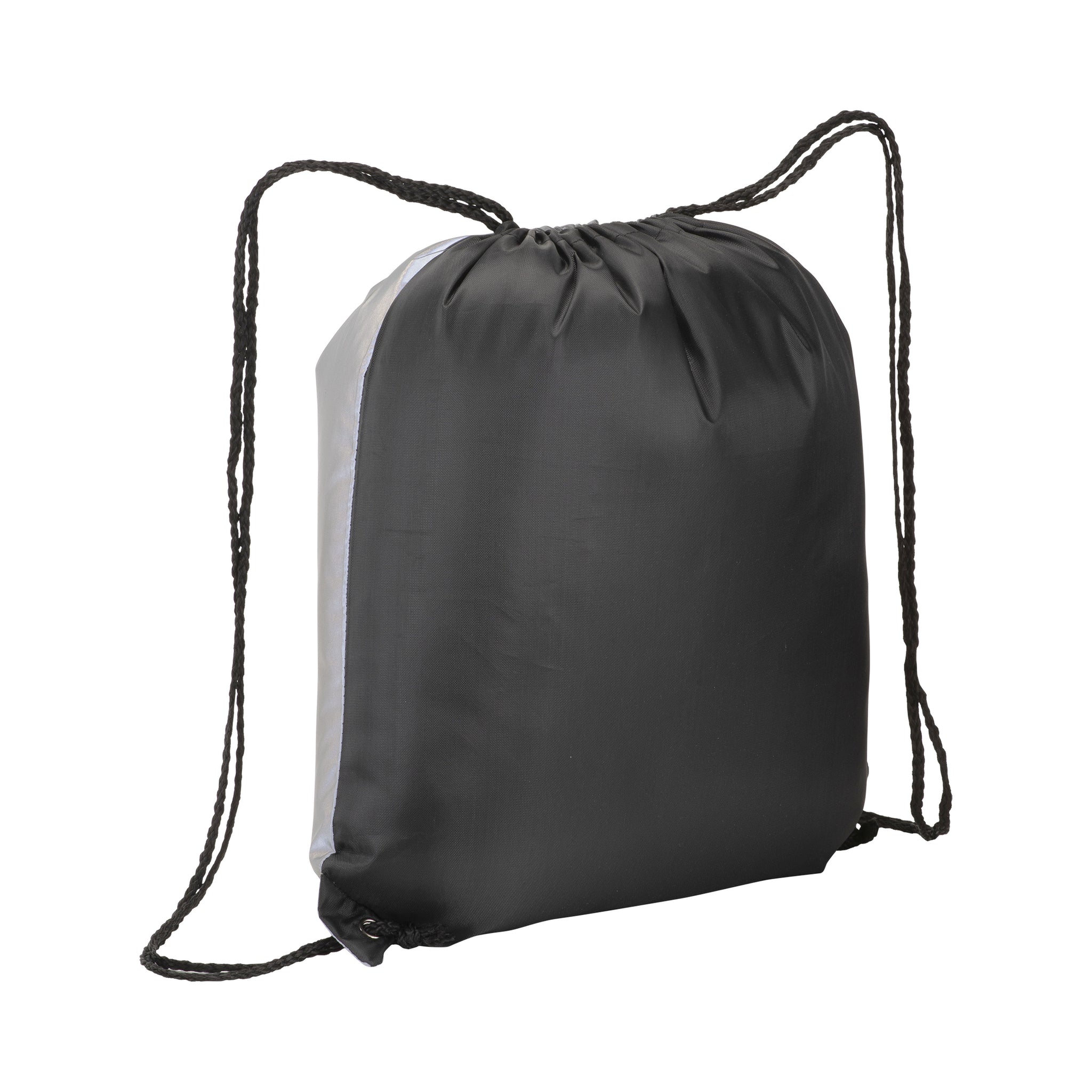 Zainetto in poliestere con lato catarifrangente. Modello in nero disponibile in 1 colore