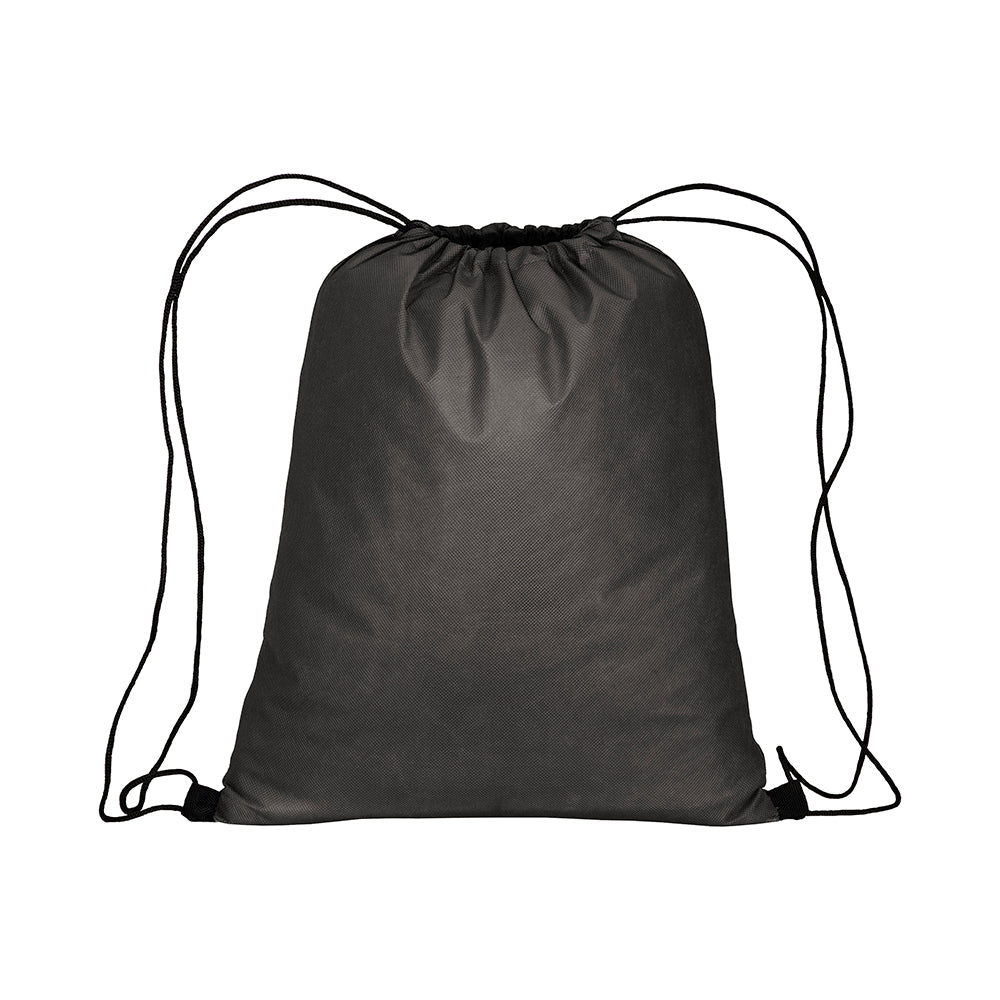 Zainetto in TNT con chiusura a strozzo. Modello in nero disponibile in 8 colori