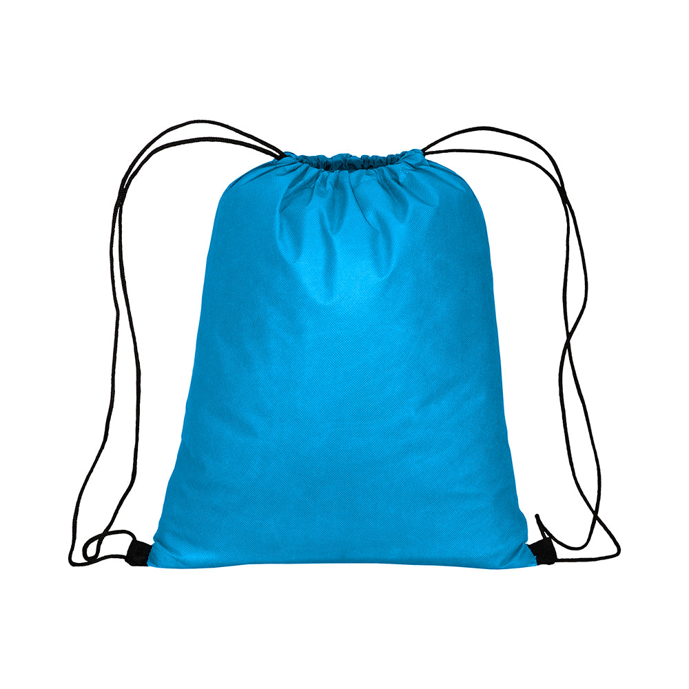 Zainetto in TNT con chiusura a strozzo. Modello in azzurro disponibile in 8 colori