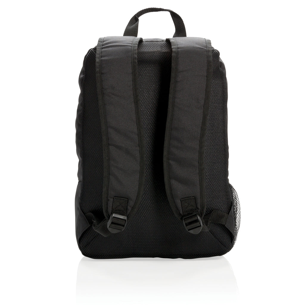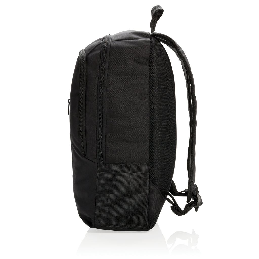 Lo stile aerodinamico e la cura dei particolari danno un’impronta minimalista a questo zaino in poliestere 600D/1680D. Include uno scomparto porta PC da 17”. Nel secondo scomparto organizzato potrai riporre tutto ciò che ti è necessario. Tasca laterale in rete porta bottiglia. Senza PVC. Capacità L 15