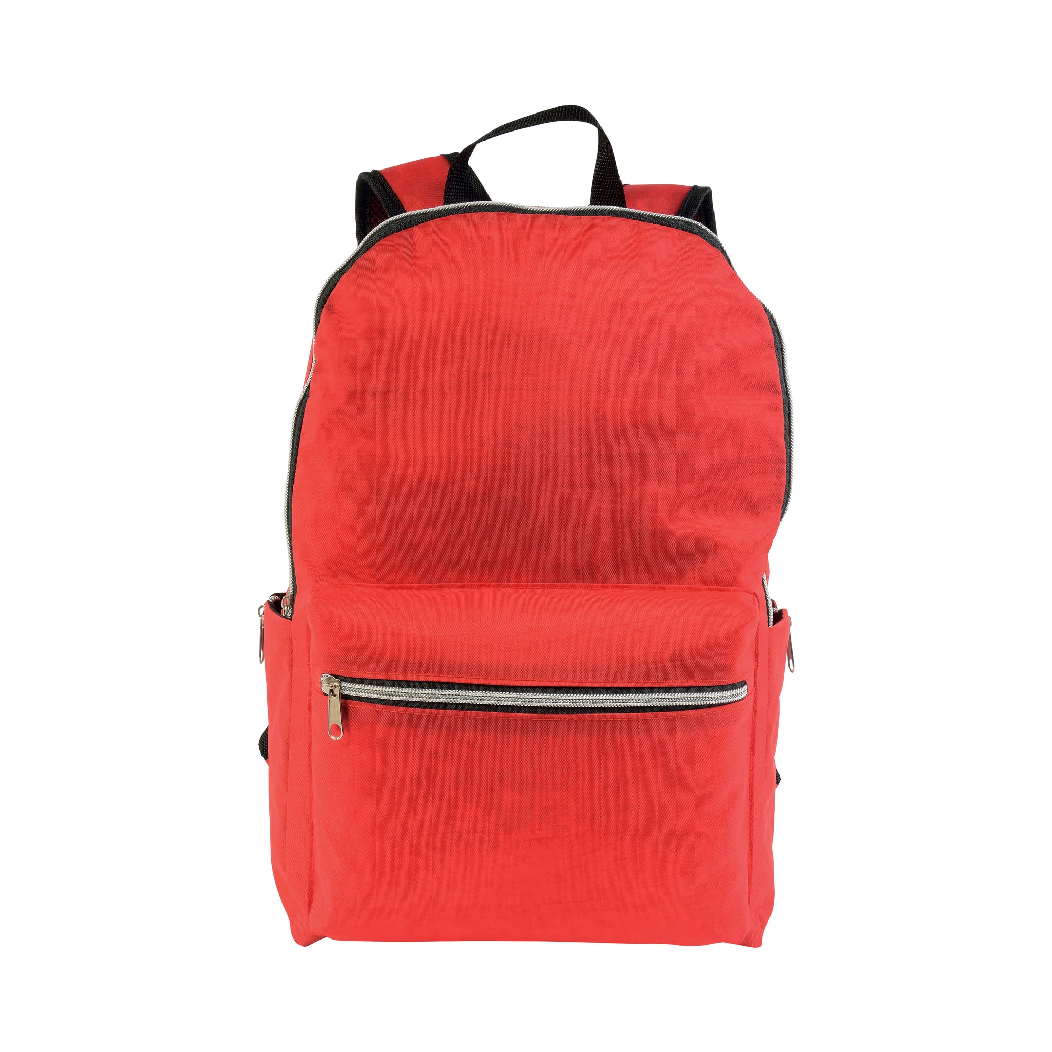 Zaino in nylon 420D con 4 tasche di cui 2 laterali a zip retinate. Modello in rosso disponibile in 2 colori