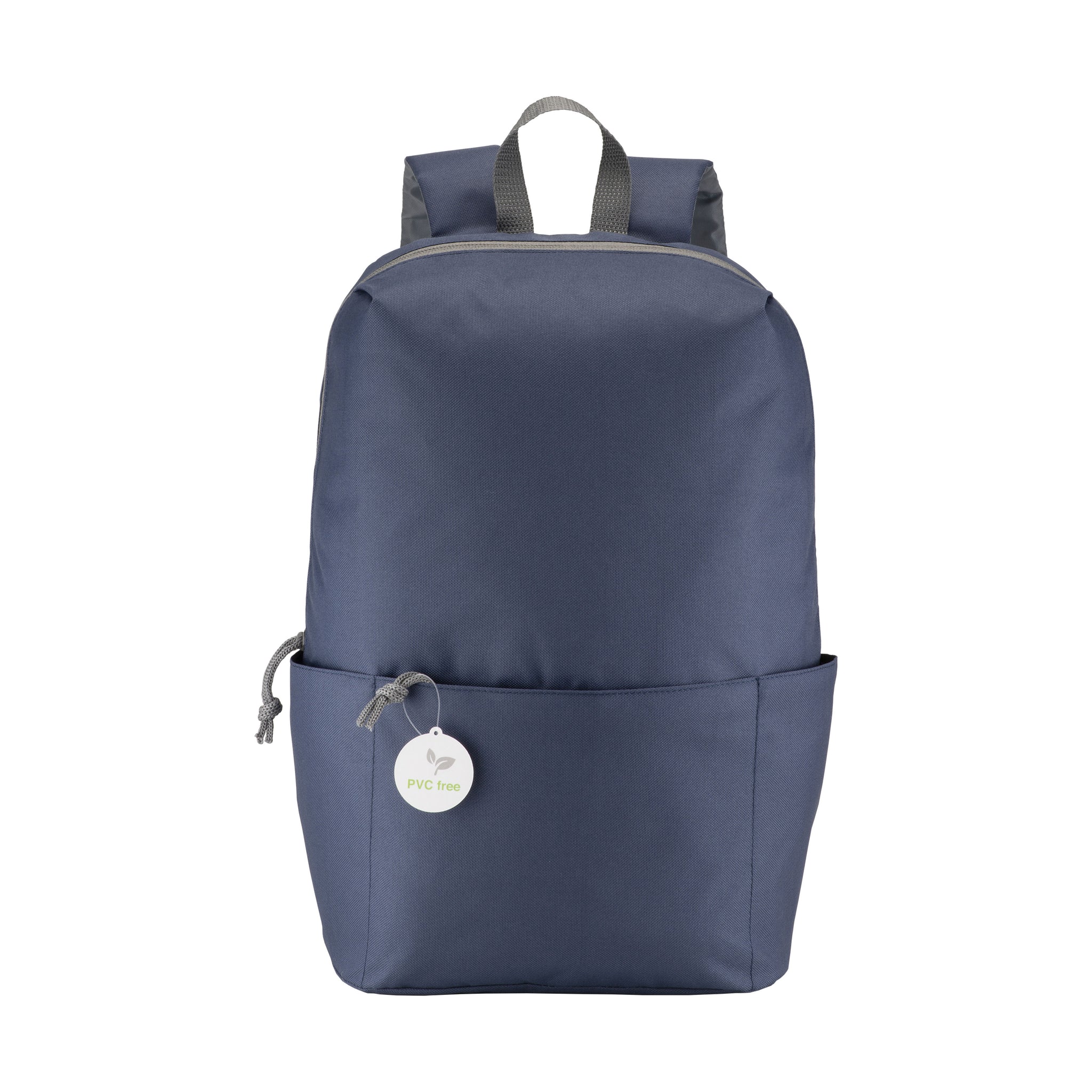 Zaino in poliestere senza PVC con quattro tasche, spallacci regolabili. Variante in blu disponibile in 6 colori
