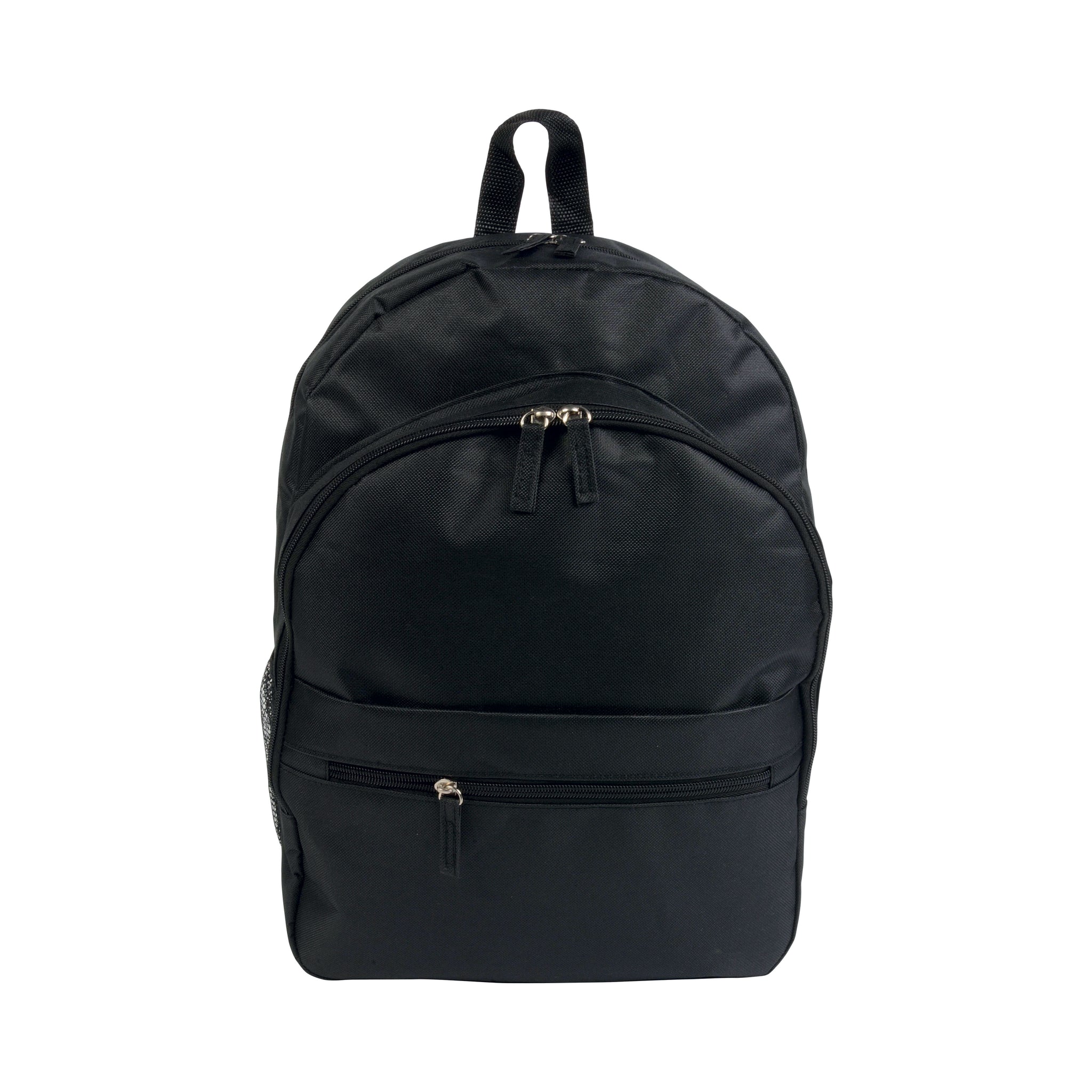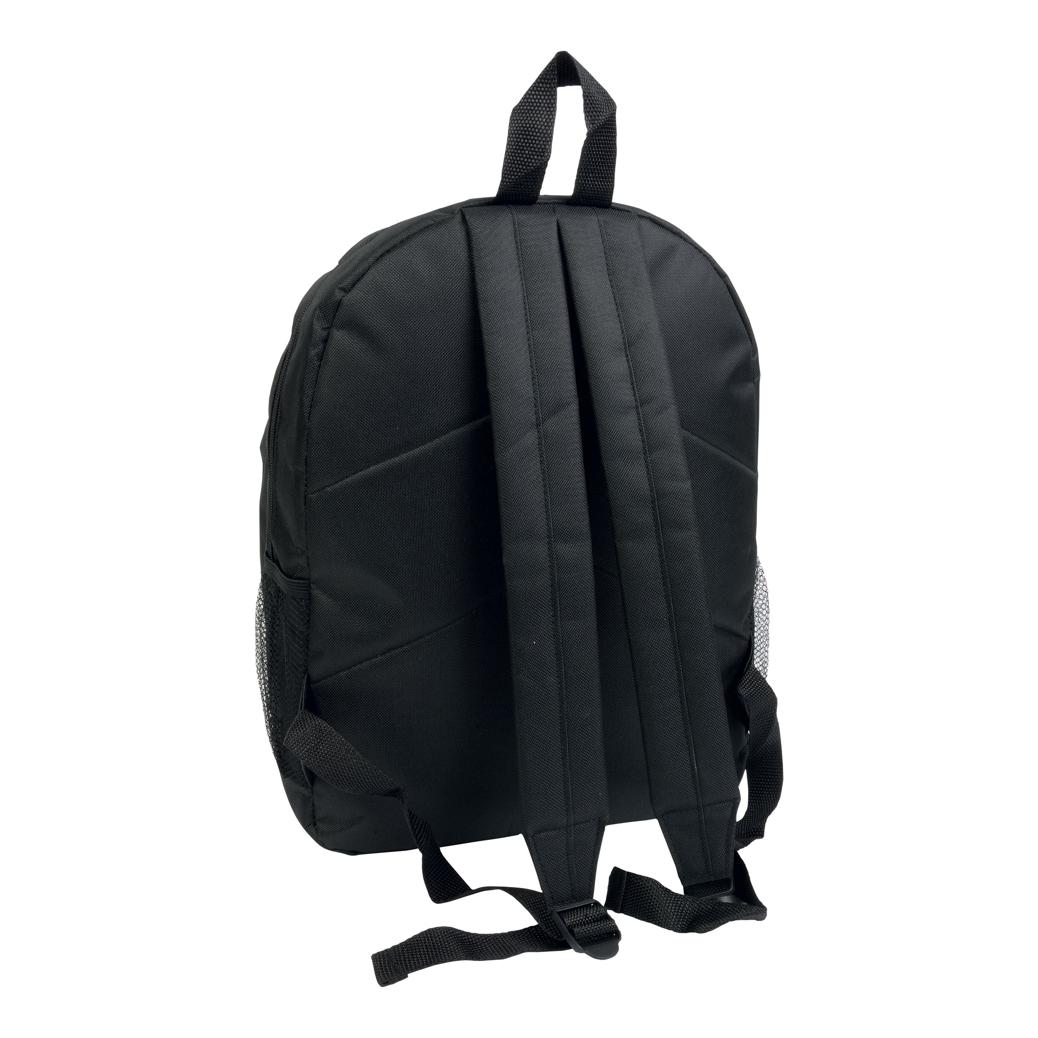 Zaino in poliestere 600D con 6 tasche di cui due laterali retinate. Variante in nero disponibile in 7 colori