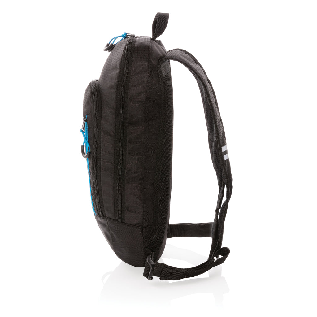 Porta con te le tue cose essenziali all'interno di questo piccolo zaino da trekking. E' realizzato in resistente poliestere ribstop ed è caratterizzato da un design minimalista. Ideale per passeggiate, giri in bicicletta e qualsiasi attività all'aria aperta. Include una tasca frontale con cerniera e un'apertura per un facile accesso al tubo d'idratazione. Grazie al pannello e agli spallacci in rete imbottiti è confortevole per tutta la giornata. Senza PVC. Capacità L 7