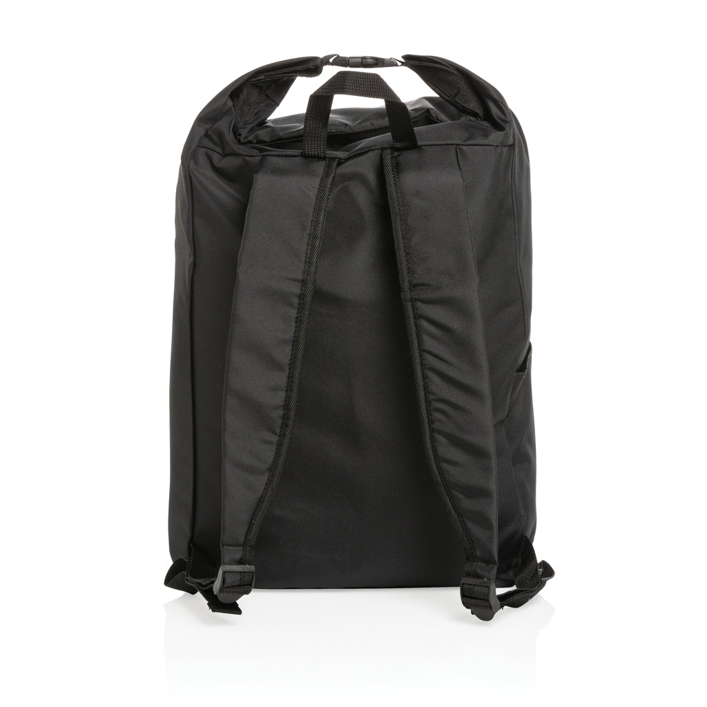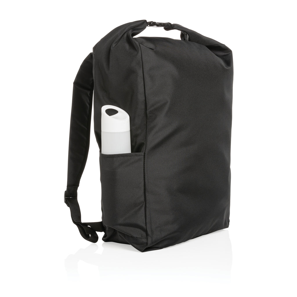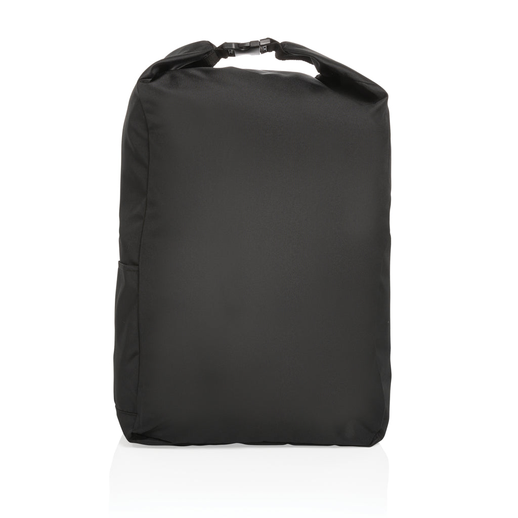 Zaino rolltop basic in rPET Impact AWARE™. Modello in nero disponibile in 3 colori